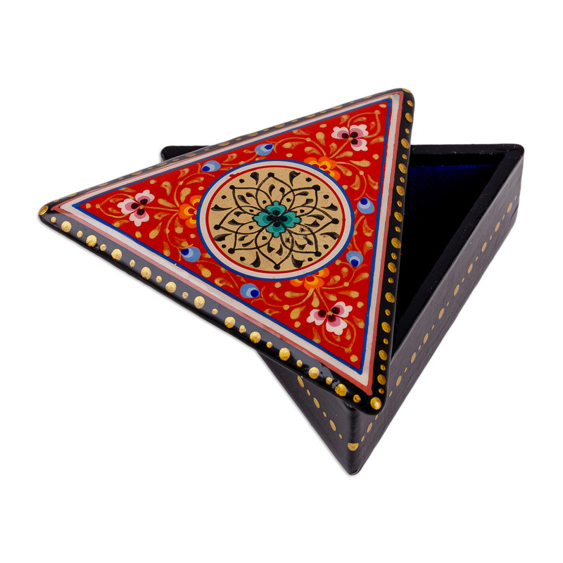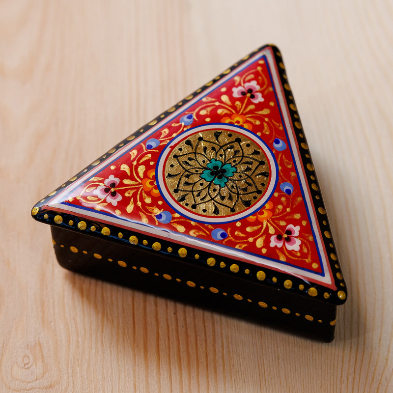You can find our lacquered papier mache jewelry box 'Triangular Romance' by Hojiakbar Vohidov in jewelry boxes categories such as Floral Boxes, Traditional Boxes, Folk Art Boxes, Hand Painted Boxes and Geometric Boxes. Enjoy exploring these sections for other Novica treasures.
