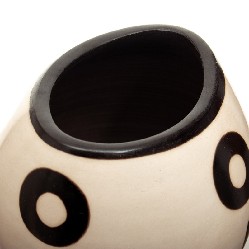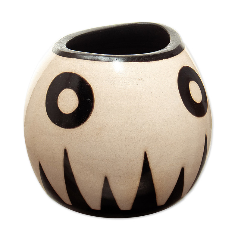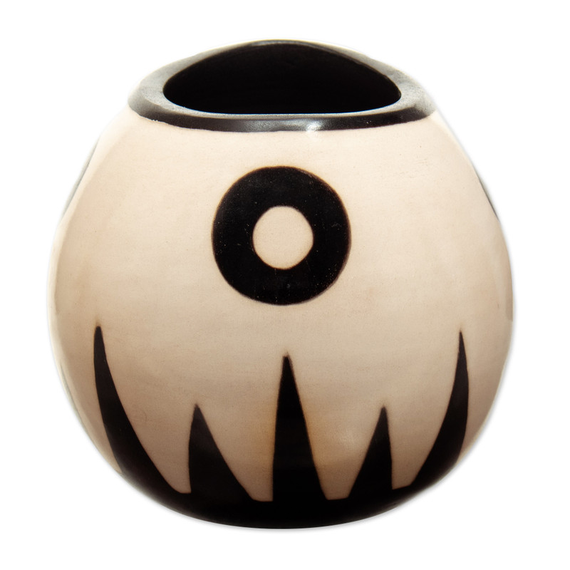 Backed by our 100% Happiness GuaranteeArtisan Jesus Rivas puts all his expertise into a fascinating design inspired by Peru's northern region. Working with ceramic and following the traditional Chulucanas technique, Jesus handcrafts a round vase with an abstract design that some will say resembles high peaks under warm suns.