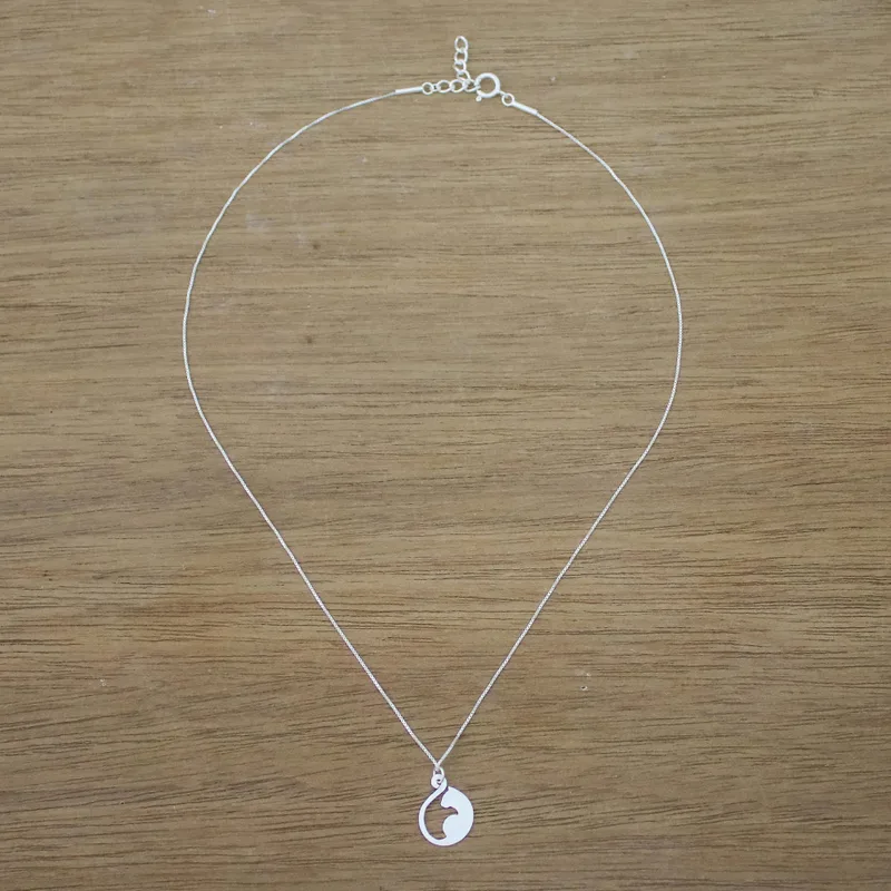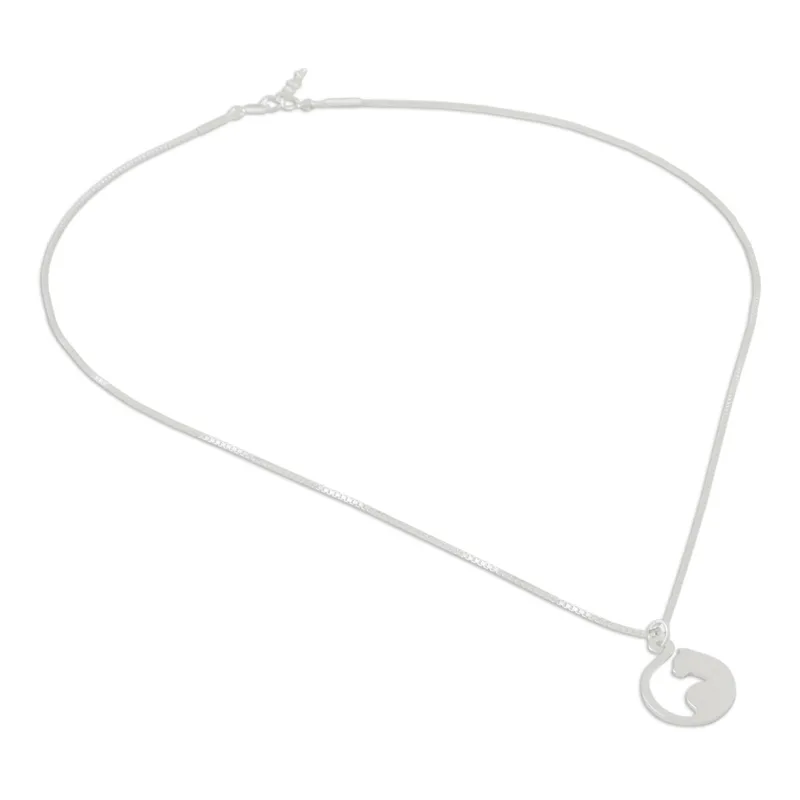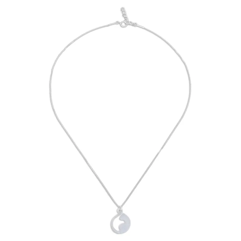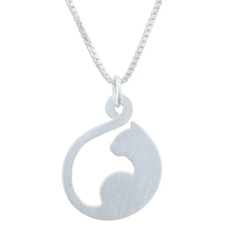 Cat lovers will adore this wonderful pendant necklace from Thailand, with its beautiful silhouette of a cat elegantly curving its tail around itself. Artisan Sarote Lochotinunt handcrafts this pretty pendant necklace from sterling silver, completing the elegant design with a shimmering brushed-satin finish.