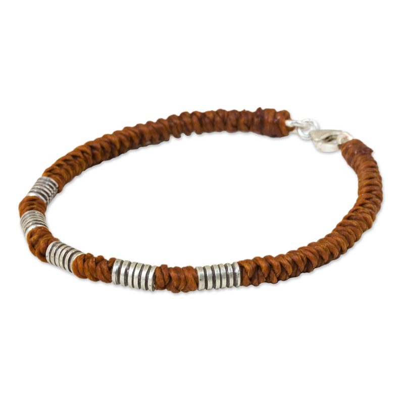 Thai artisan Napapat designs this braided bracelet with techniques that the Yao women normally only teach their daughters. She decorates it with silver beads featuring an oxidized finish done by Karen hill tribe silversmiths. This bracelet comes in a stunning burnt orange color.