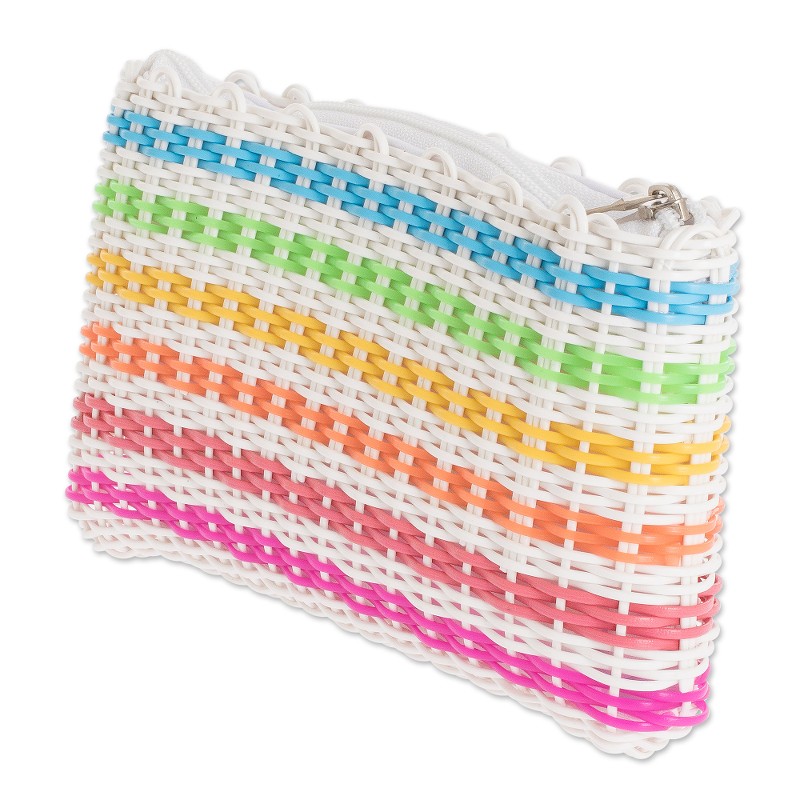 Backed by our Happiness GuaranteeArtisans join together to help save the planet. This sturdy eco-friendly cosmetic bag is woven by Claudia Hernandez into a rainbow-themed bag. Lined in cotton, it closes with a zipper.