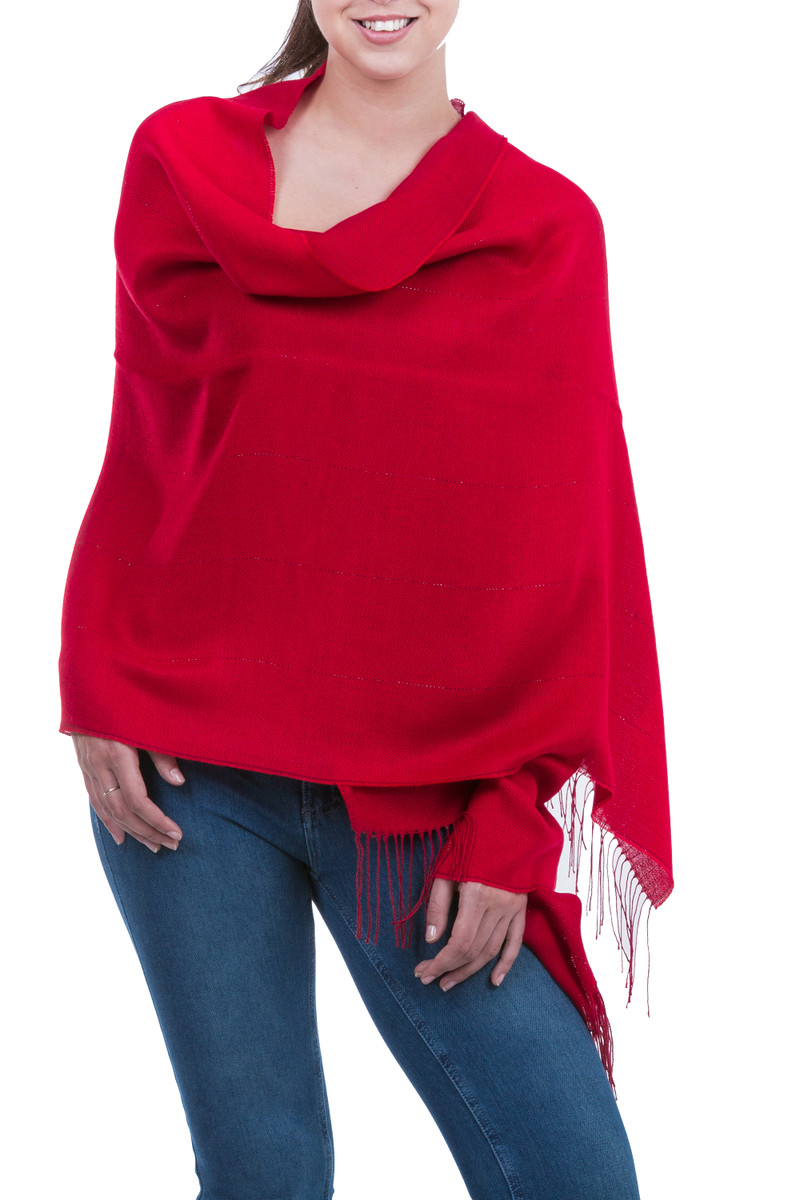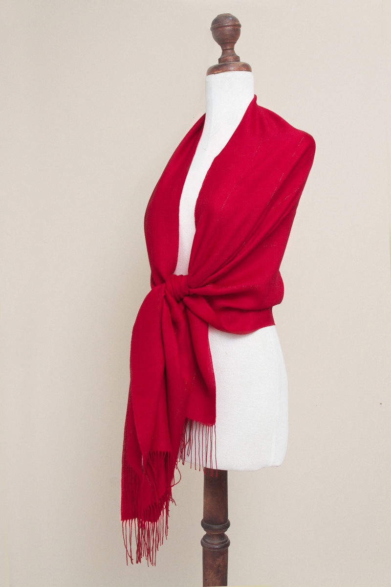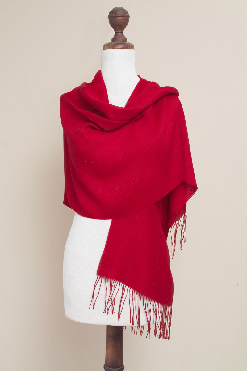 You can find our alpaca blend shawl 'Crimson Sparkle' by Raquel and Gregor in accessories categories such as Hand Woven Shawls, Cotton Shawls, Alpaca Shawls and Alpaca Wool Shawls. Enjoy exploring these sections for other Novica treasures.
