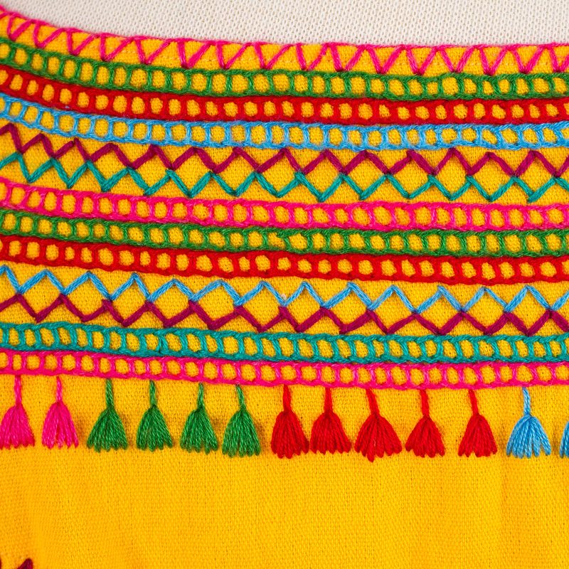 Perfect for the warmer months, this cotton blouse from Mexico features a solid color in marigold. Manuela Gomez creates this sleeveless blouse, woven by hand on the traditional backstrap loom. Colorful brocade embroidery decorates the neckline of this bright top.