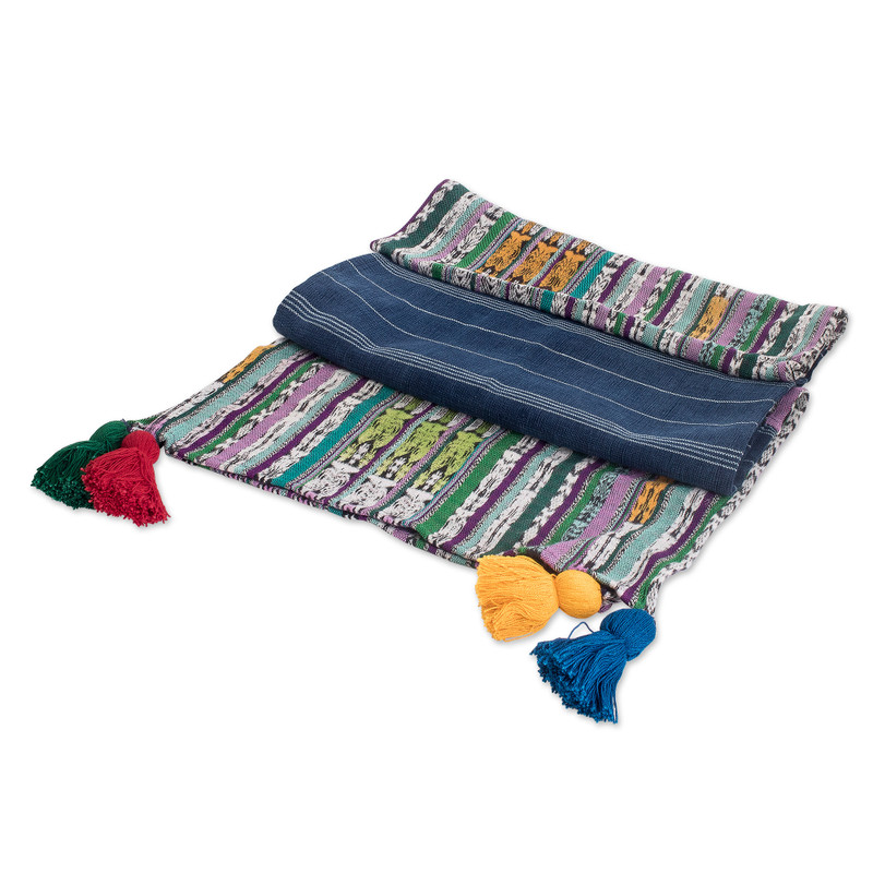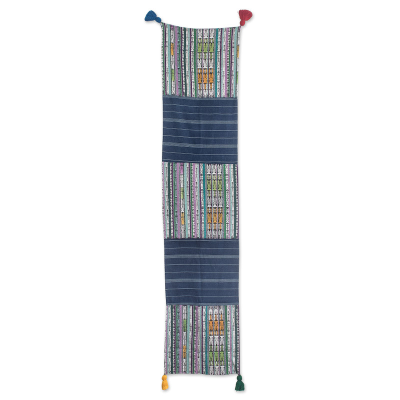 Delivery EstimateBring unparalleled style and a sense of cultural significance to your table with this exquisite cotton runner, a standout decorative accent that will impress your guests and add a touch of vibrant color to your space. Laura Leticia Burrion's unique design blends a lovely striped blue fabric with expertly hand-woven textiles from traditional Guatemalan attire, finishing it with colorful cotton tassels on each corner.