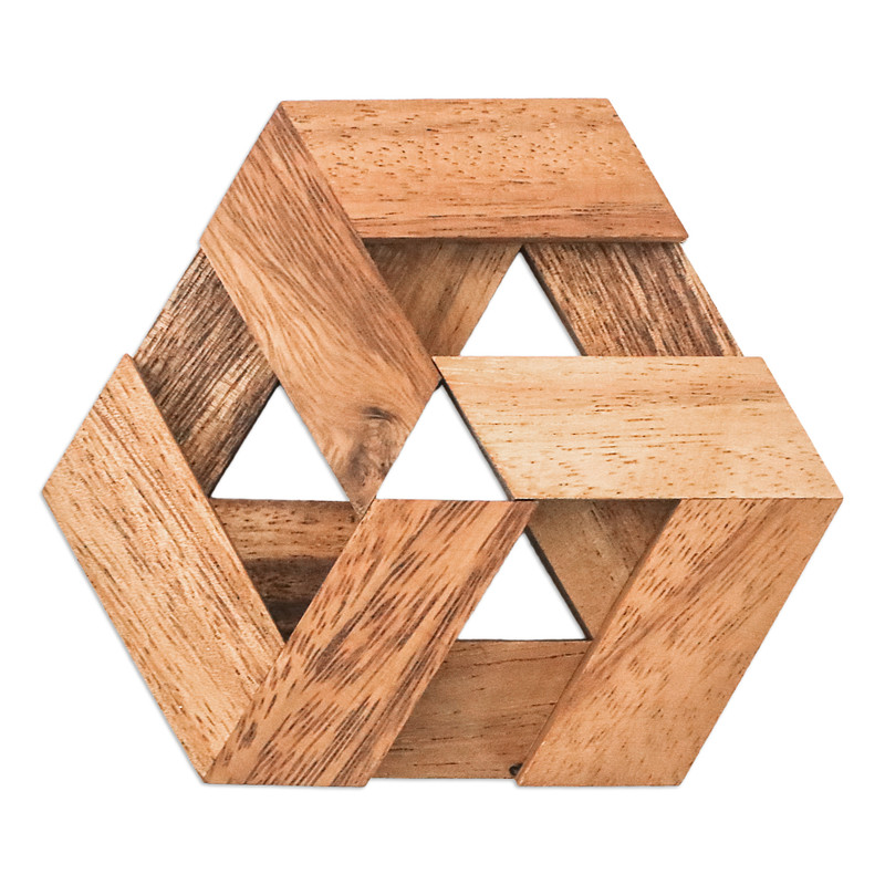 Backed by our 100% Happiness GuaranteeForming a hexagonal shape, 12 pieces are hand-carved from natural raintree wood. Waraporn Khamsuk creates this geometric puzzle for an elegant brain teaser to add to your home.