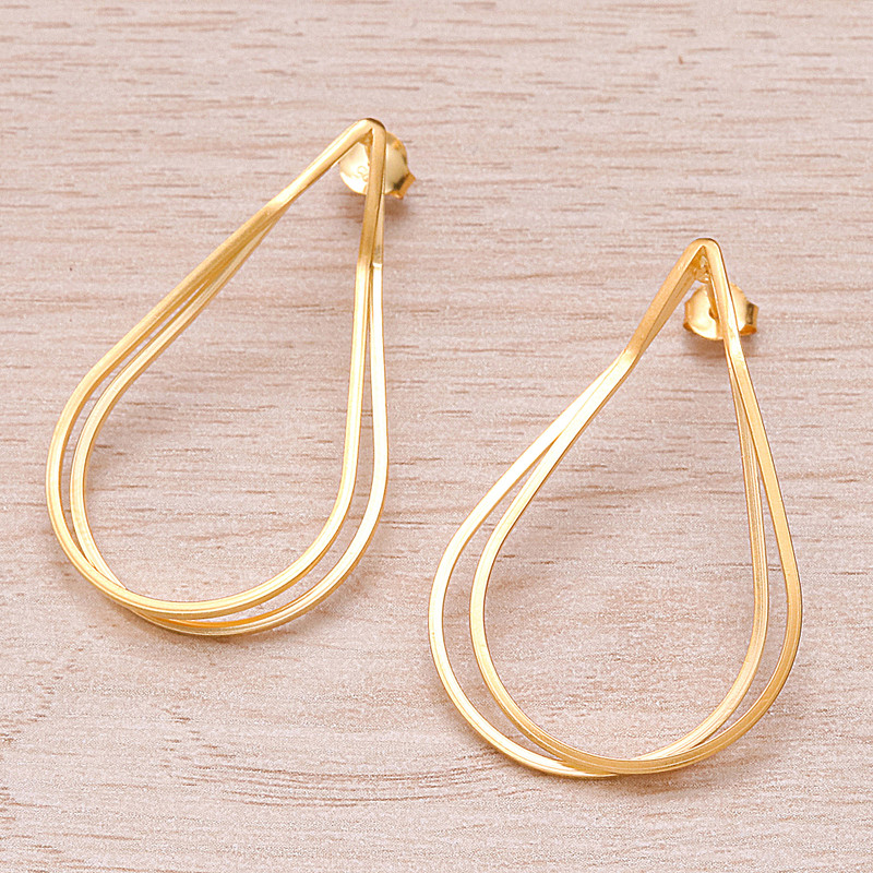 Glorious formations form these glamorous drop earrings—a creation by master artisan Lalana of Thailand. The artisan works with modern techniques to create this minimalist pair, whose drop shape is accented by 18k gold plating.