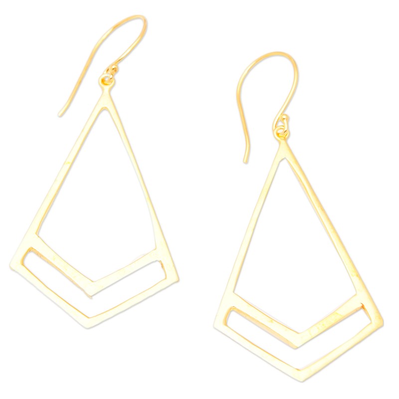 You can find our gold-plated dangle earrings 'Modern Victory' by Suana Yasa in jewelry categories such as Modern Earrings, No Stone Earrings, Gold Plated Earrings and Dangle Earrings. Enjoy exploring these sections for other Novica treasures.