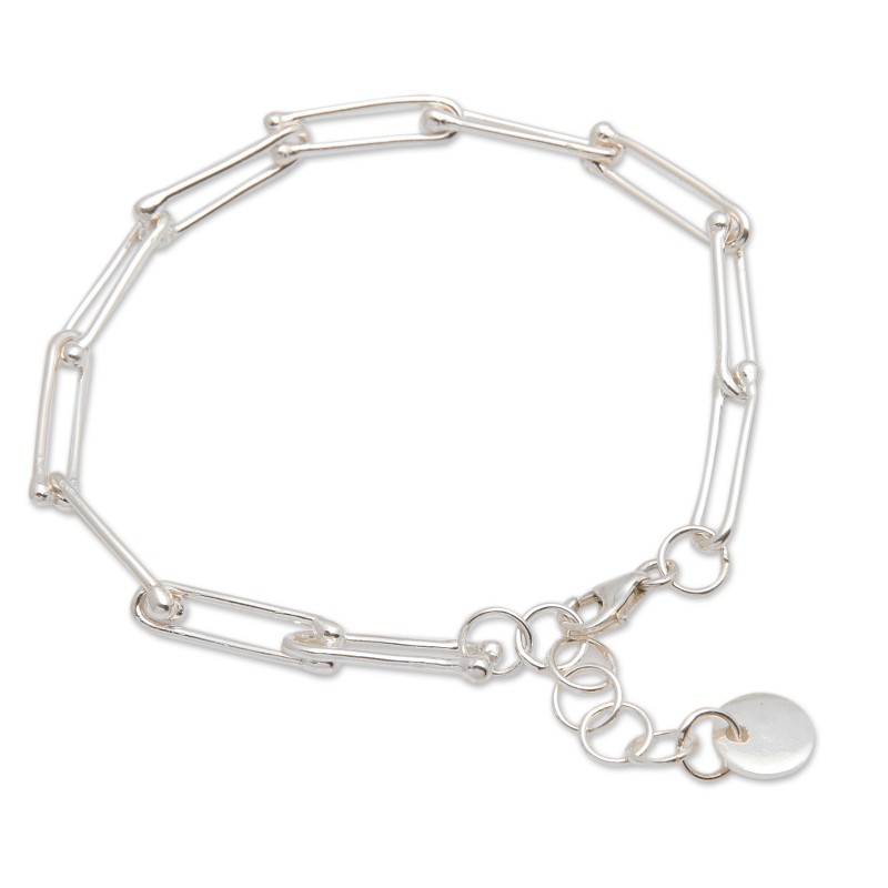 Backed by our 100% Happiness GuaranteeMade for those with a refined and dapper style, Griya Suarningsih's newest design explores the sophisticated side of jewelry. Directly from Bali, this sterling silver charm bracelet has a high polish finish that goes around the minimalist structures that compose the chain, allowing for a luminous look.