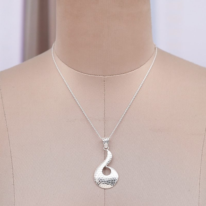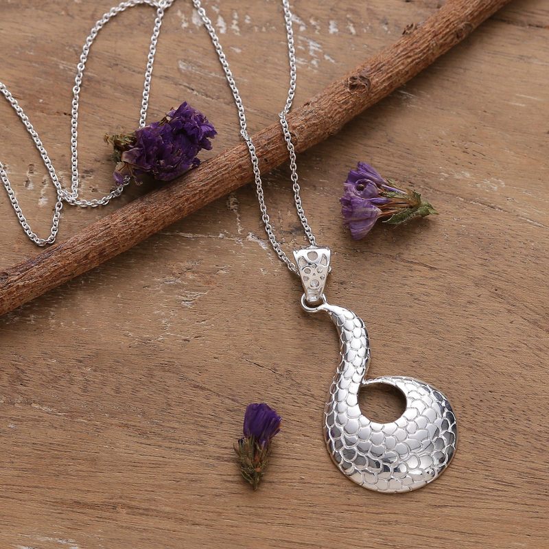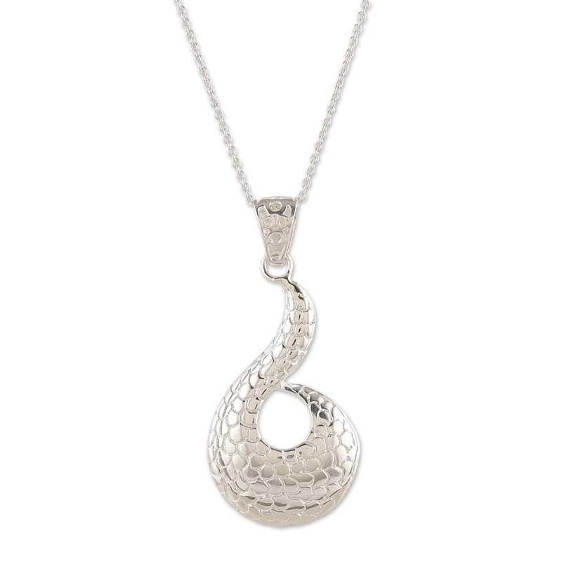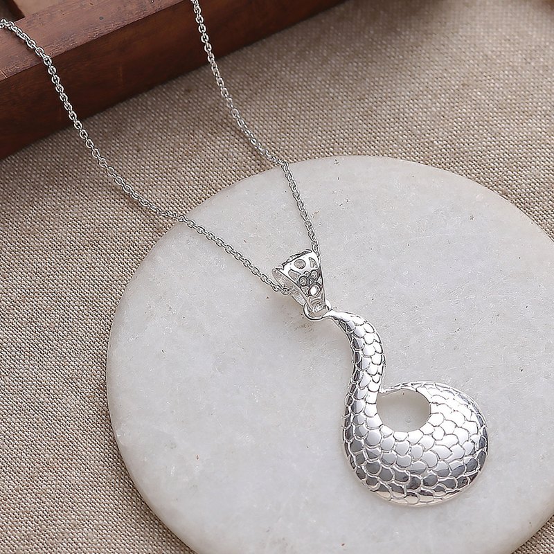 Backed by our 100% Happiness GuaranteeEvoking a pangolin's noble spirit, this brass necklace by Ritu Malpani arrives from distant Indian lands to complete your radiant essence. The pendant, made in a sinuous shape, is bathed in silver plating, enriching a dapper pangolin-scale pattern to symbolize resilience.