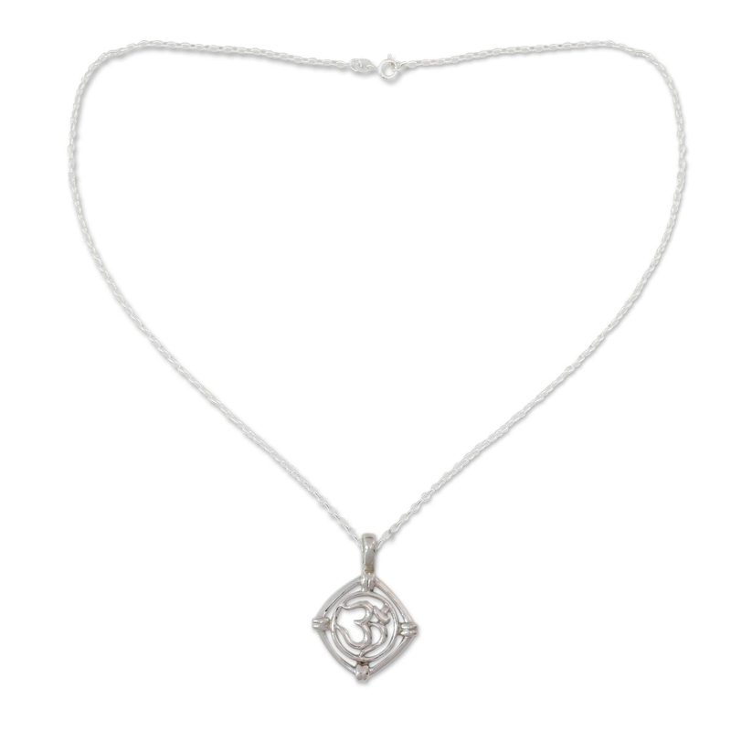 The om symbol of Lord Shiva flourishes like ancient calligraphy. This mantra is used in mystical contemplation of ultimate reality and is considered the resonant body of the absolute. From Bhavesh, this beautiful necklace integrates the Sanskrit symbol into his original design.