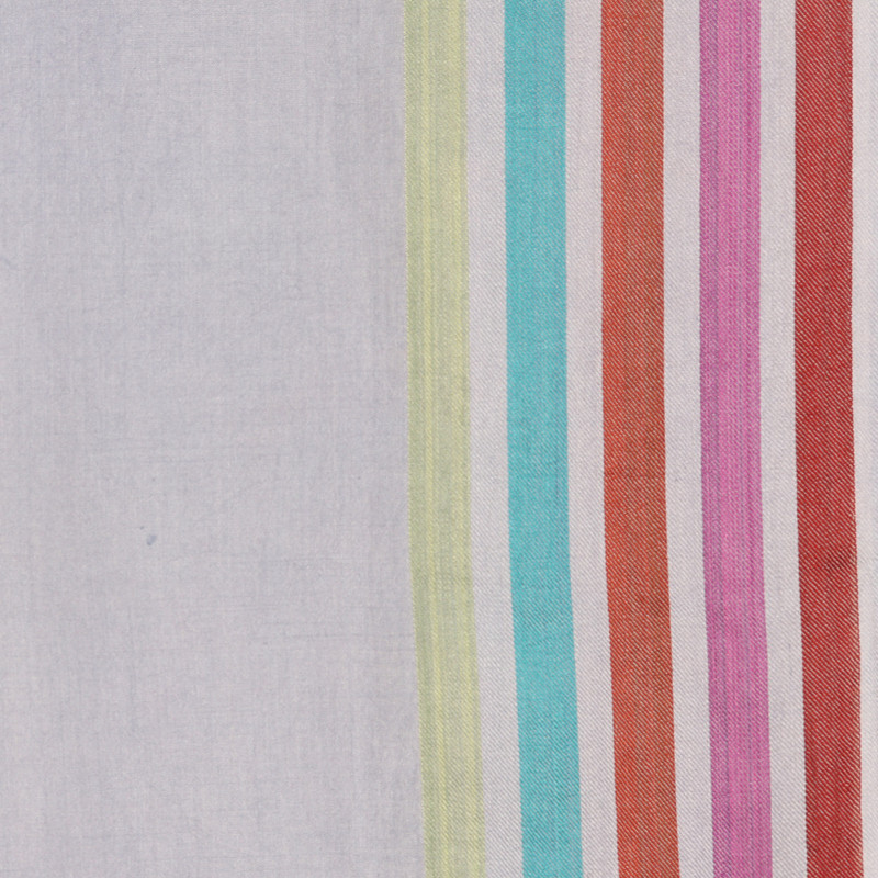 With a stylish design ideal for elegant soirees or casual events, this fancy silk shawl comes in a steel blue tone enhanced with colorful stripes. Presented by Khitish, this garment is handloomed in India with traditional techniques.