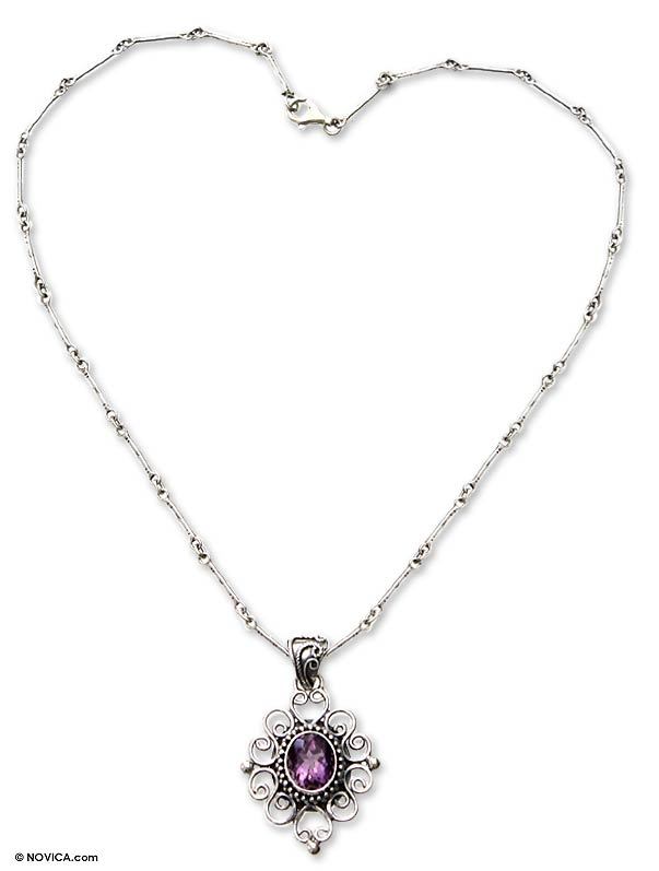 You can find our amethyst pendant necklace 'Lilac Scroll' by Wayan Sarjana in jewelry categories such as Birthstone Necklaces, Amethyst Necklaces, Sterling Silver Necklaces and Pendant Necklaces. Enjoy exploring these sections for other Novica treasures.