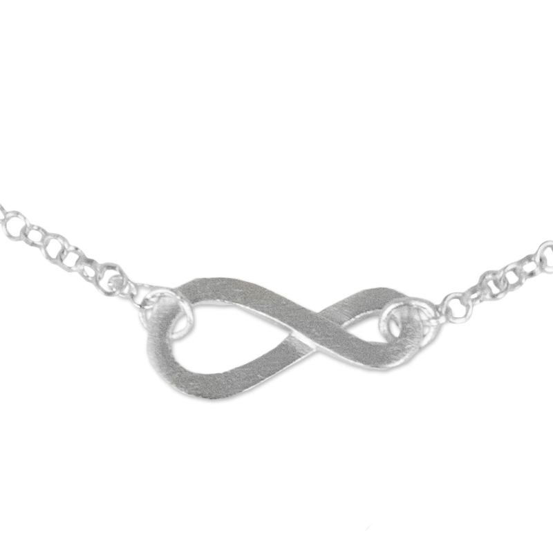 Symbolic of an everlasting friendship or a love so strong it could survive beyond the span of a lifetime, the infinity symbol graces this anklet. Thailand's Jantana crafts the medallion and chain of sterling silver with her trademark brushed satin finish.