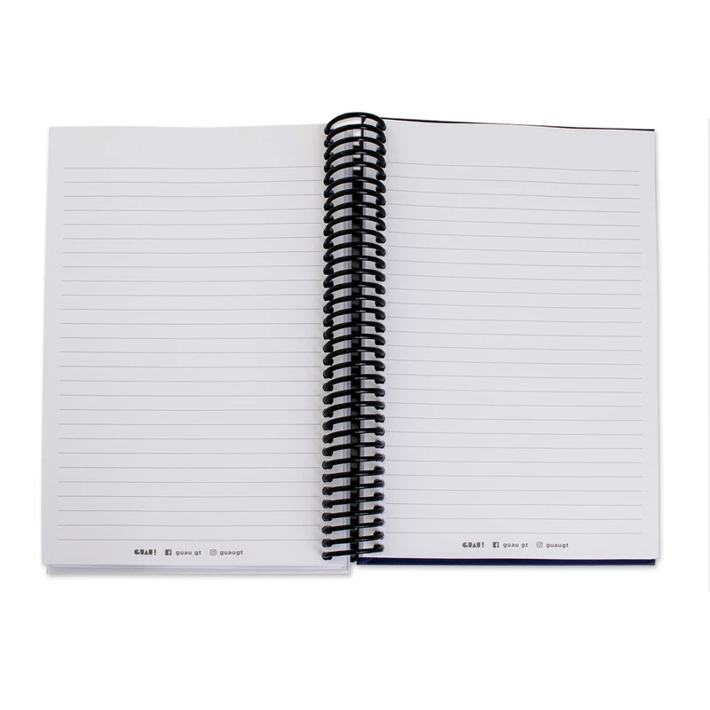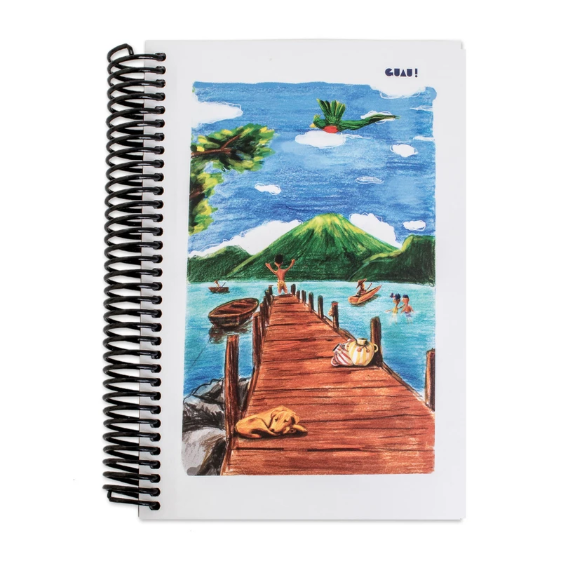 New adventures, experiences and memories are arriving to be written in a convenient accessory paying homage to Guatemala. Designer Gaby Briz works side by side with a talented artisan team, creating a sublime composition of Lake Atitlan and printing it on the cardboard cover of this lined journal. With 100 paper pages for long-term use and a plastic coil binding, the piece features the Spanish expressionGuau! set in dapper calligraphy at the front of the design, making a fun nod to this blessed nation's name and the marvelous nature of its landscapes.
