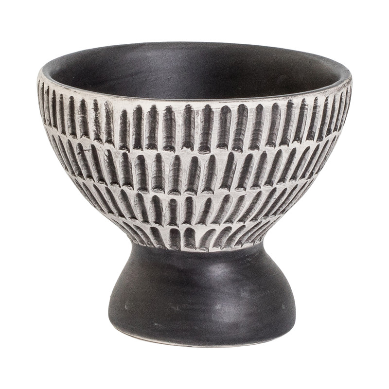 Indulge in the art of modern living with this exquisite ceramic vase where the raw beauty of natural clay perfectly blends with bold black accents meticulously painted by hand. Guatemalan artisan Lilyan Benecke designs a textured masterpiece that effortlessly elevates any room to new heights of contemporary chic.