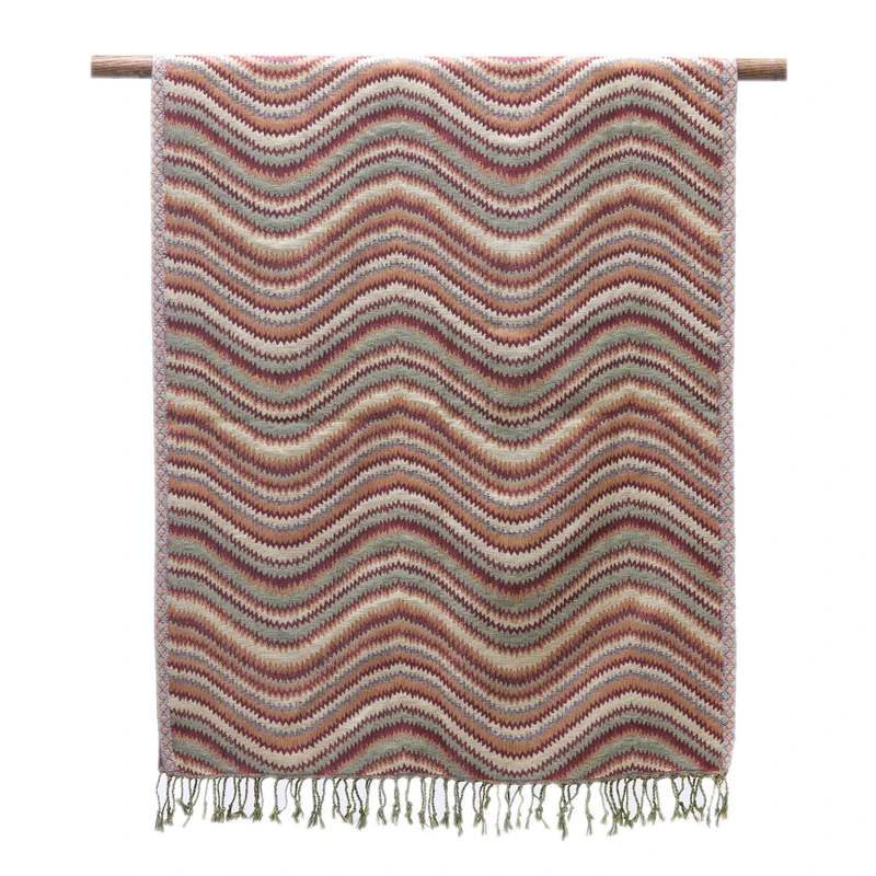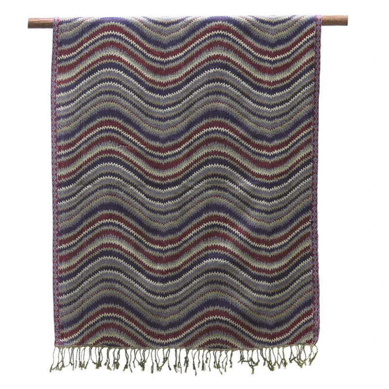 Featuring mystical wave patterns in a variety of colors, this fantastic accessory from India is crafted after the style of traditional jamawar shawls. Seema presents this shawl, which is woven of a viscose blend using the jacquard technique. Elegant fringes complete the shawl at each end.