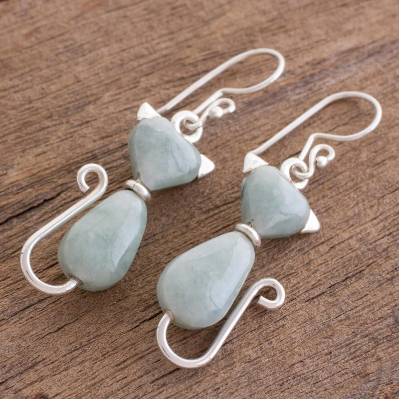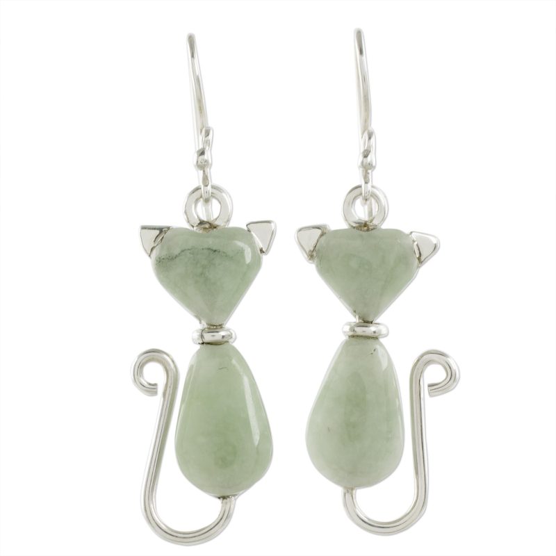 You can find our jade dangle earrings 'Cats of Love in Light Green' by Ruben and Gilda Perez in jewelry categories such as Animal Themed Earrings, Jade Earrings, Sterling Silver Earrings and Dangle Earrings. Enjoy exploring these sections for other Novica treasures.