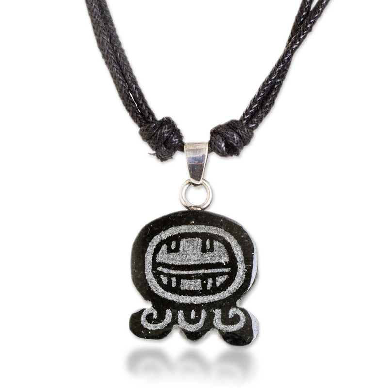 Worn close to the heart, this jade pendant necklace features a nahual glyph, a personal spirit tied to each individual according to the ancient Mayan calendar. The Aj nahual represents strength, justice, protection of the home, the energy of leaders and connection with ancestral roots. Suspended on an adjustable waxed cotton cord with sterling silver accents, Ruben and Gilda Perez's stunning design brings history and symbolism together in a timeless, everyday accessory.