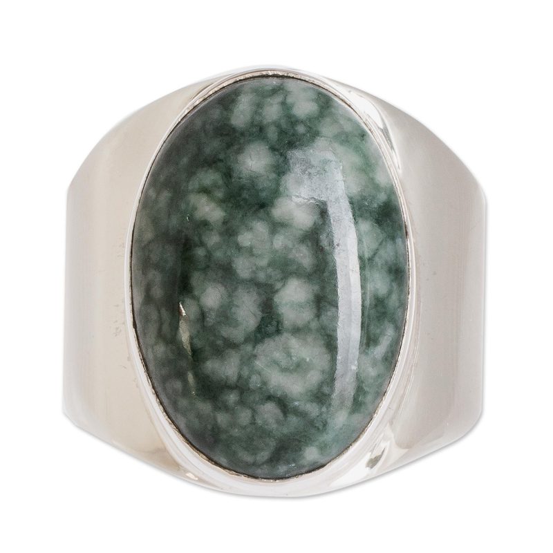Backed by our 100% Happiness GuaranteeZandra Lorena Sajbin in Guatemala designs this handsome men's ring with a classic look. The polished sterling silver ring is set with a cabochon of natural green jade.