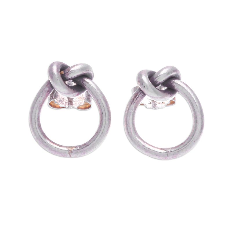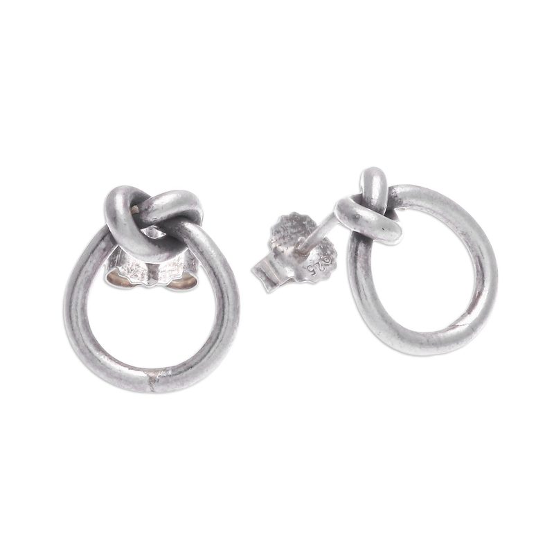 Crafted with an infinity knot, Sasithon Saisuk's button earrings will remind you of the eternal. The Thai artisan centers a 950 silver hoop with a simple knot, finishing the precious metal with oxidized details and a sterling silver post clasp.