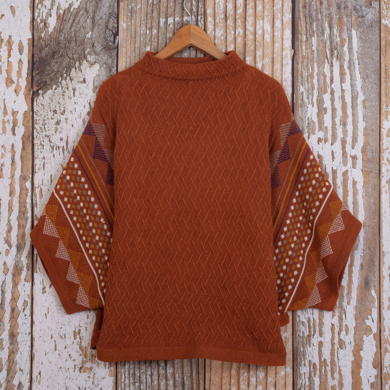 You can find our 100% baby alpaca poncho sweater 'Spicy Paprika' by Patricia Lopez in clothing categories such as Alpaca Sweaters, Alpaca Wool Sweaters and Pullovers Sweaters. Enjoy exploring these sections for other Novica treasures.