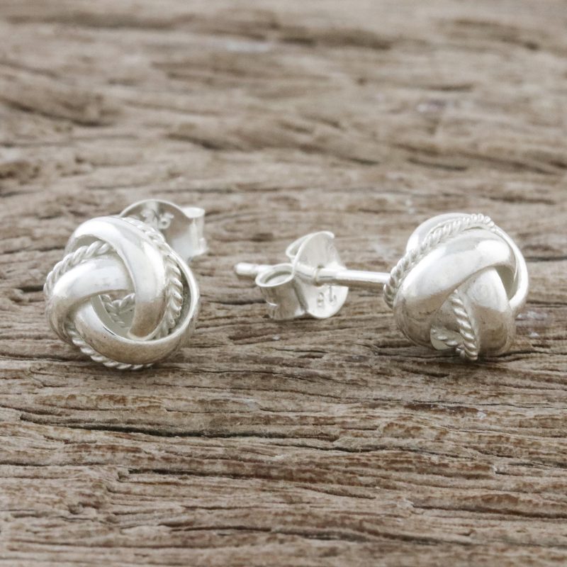 Backed by our 100% Happiness GuaranteeSterling silver rope motifs and bands with a high-polish finish form sweet knots that adorn the ears. Presented by Wadarat Supasirisuk, these sterling stud earrings from Thailand showcase local handicrafts.