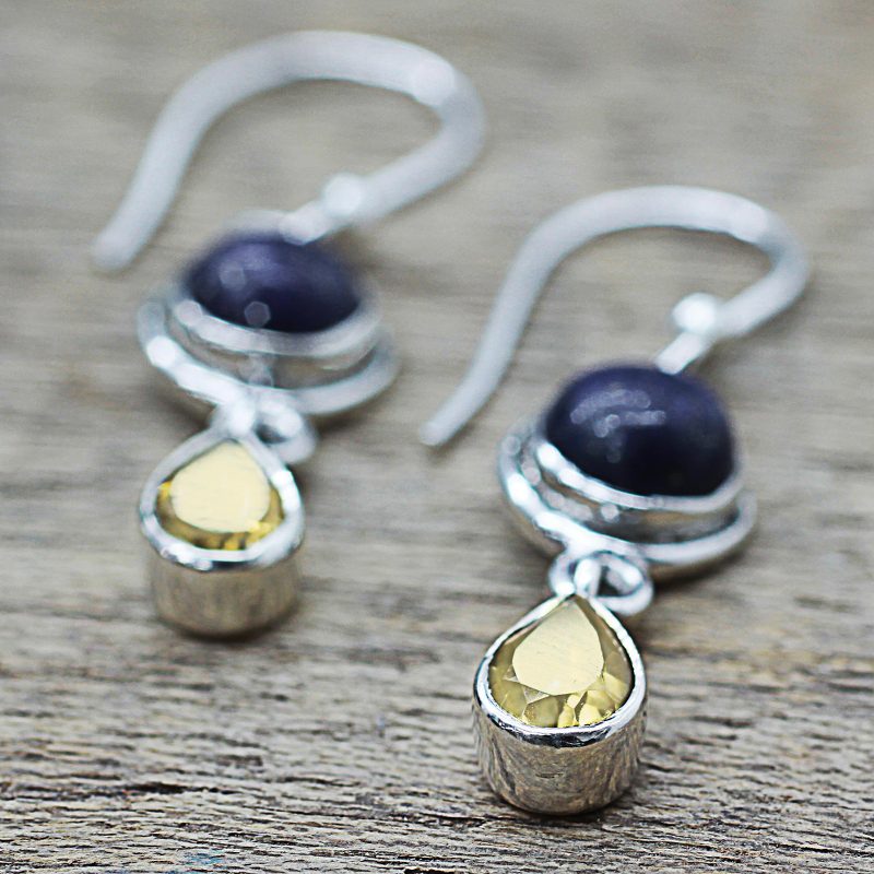 Backed by our 100% Happiness GuaranteeHandcrafted in India, these sterling silver earrings are presented by designer Neeru Goel. They feature cabochon lapis lazuli and faceted pear-shaped citrine, resembling drops of pure sunlight falling from a noonday sky.