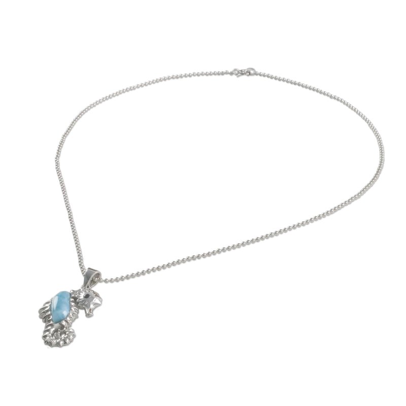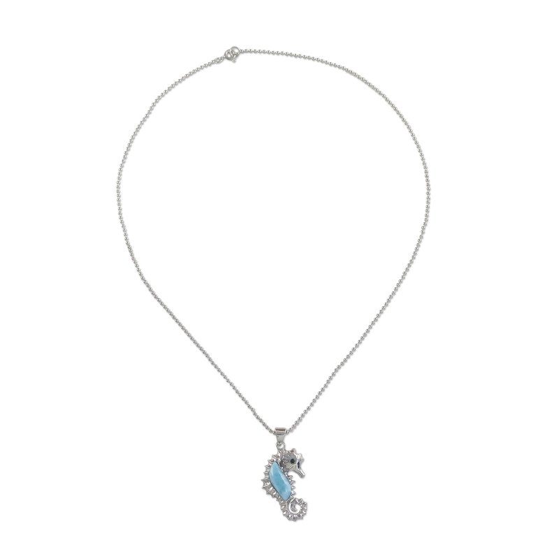 Backed by our 100% Happiness GuaranteeThis necklace handcrafted by Thai artisan Michael Krainer features a lovely seahorse pendant. Set in sterling silver with detailed silverwork accenting its spines, the body of the seahorse is larimar with an eye of faceted black spinel gemstone.