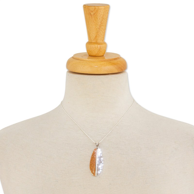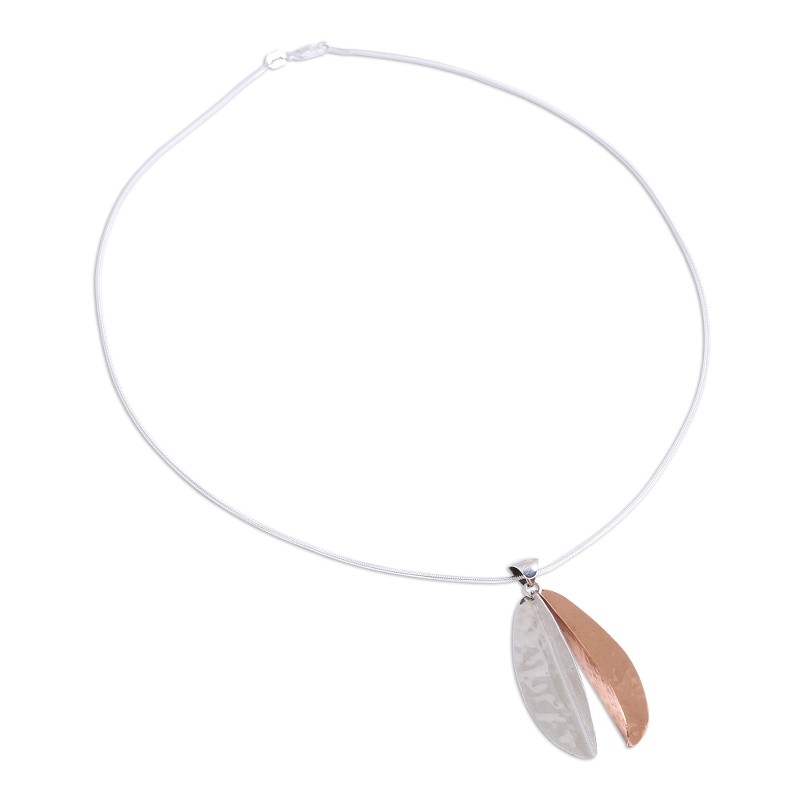 Rippling like lake waters, a modern leaf is crafted by hand of with a hammered finish. Guillermo Arregui works in Taxco sterling silver to create this beautiful necklace. Gleaming copper adds warmth to the lovely pendant.