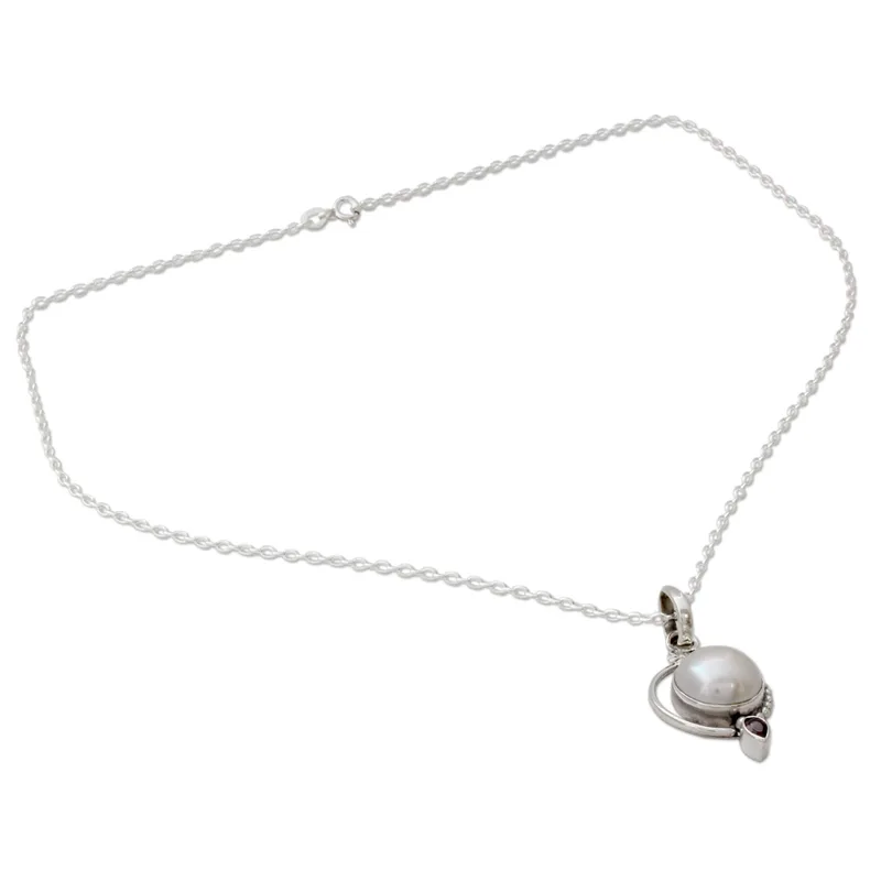 Shanker celebrates romance with this stunning pendant necklace. Combining faceted garnet with a radiant pearl, he cradles the gems in sterling silver settings.