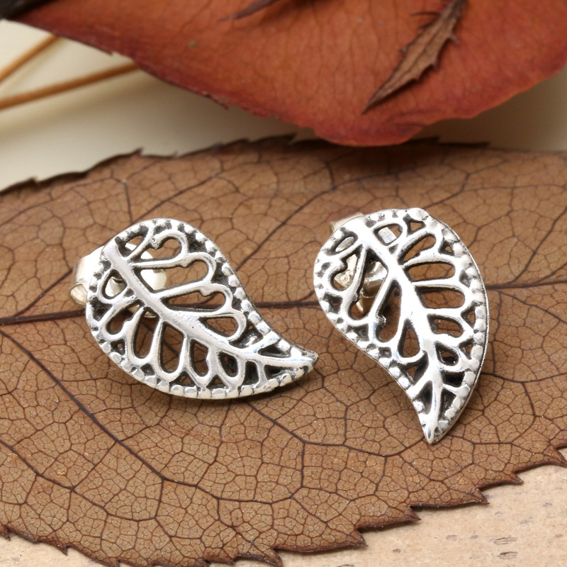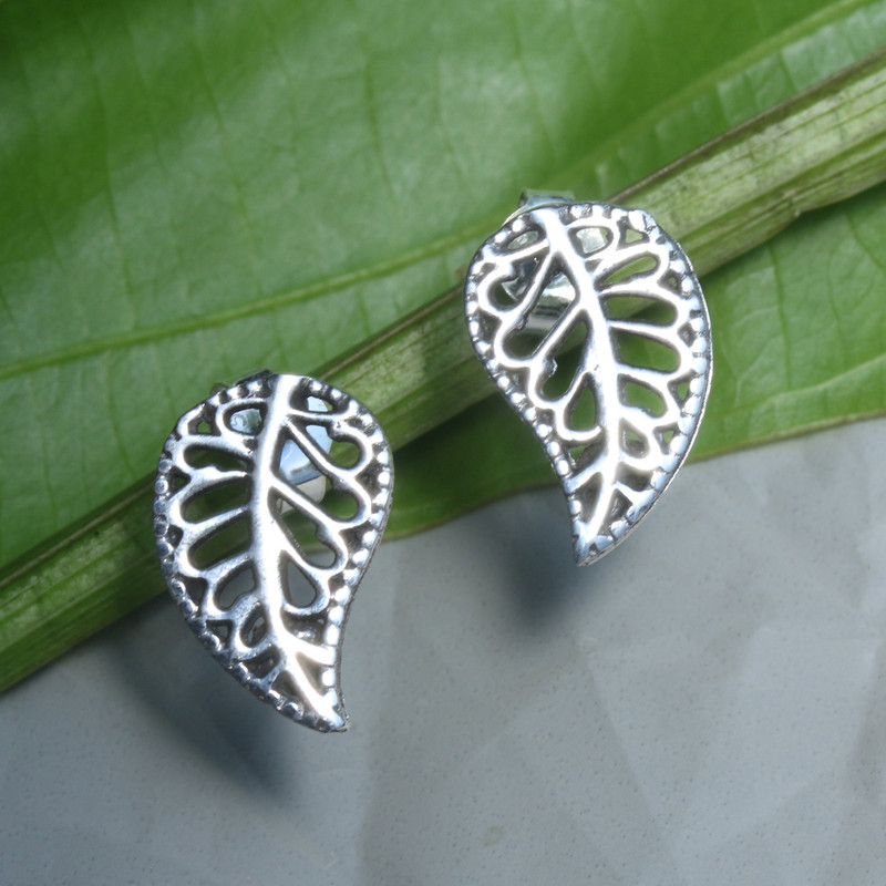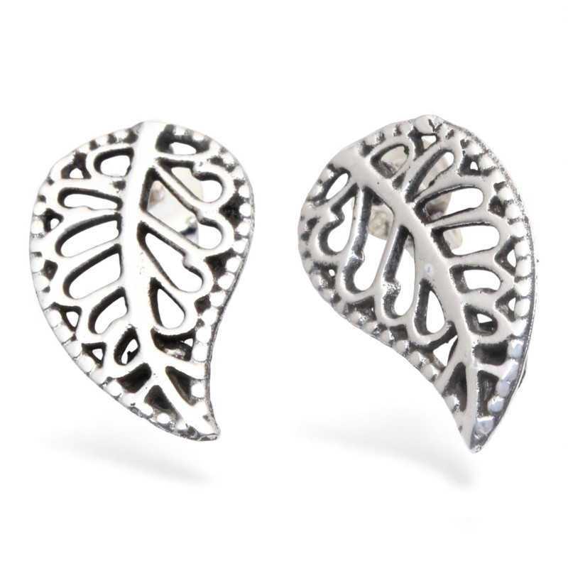 Nature's foliage unfurls in delicate sterling silver, creating airy openwork patterns that celebrate the organic beauty of leaves. These button earrings feature intricate cutouts that form botanical silhouettes, their negative space as essential to the design as the metal itself, all achieved through traditional Balinese crafting techniques. Designed by Silvani, each earring balances detailed leaf motifs with a lightweight, wearable structure that transitions effortlessly from casual mornings to polished evenings, versatile enough to complement any mood or outfit you choose.