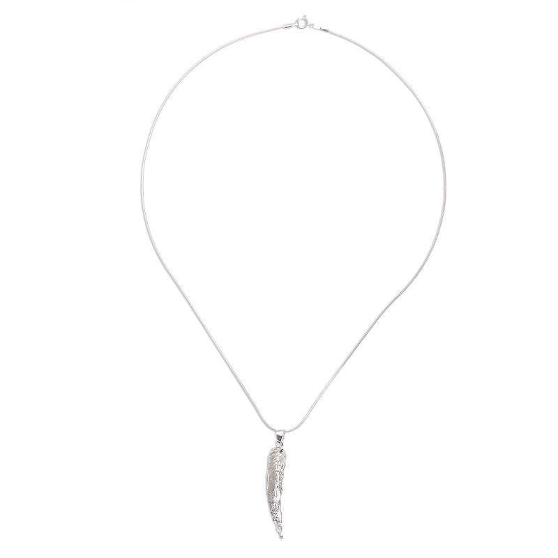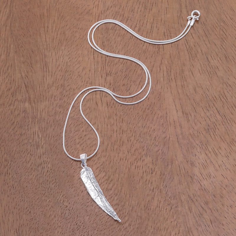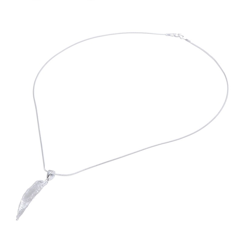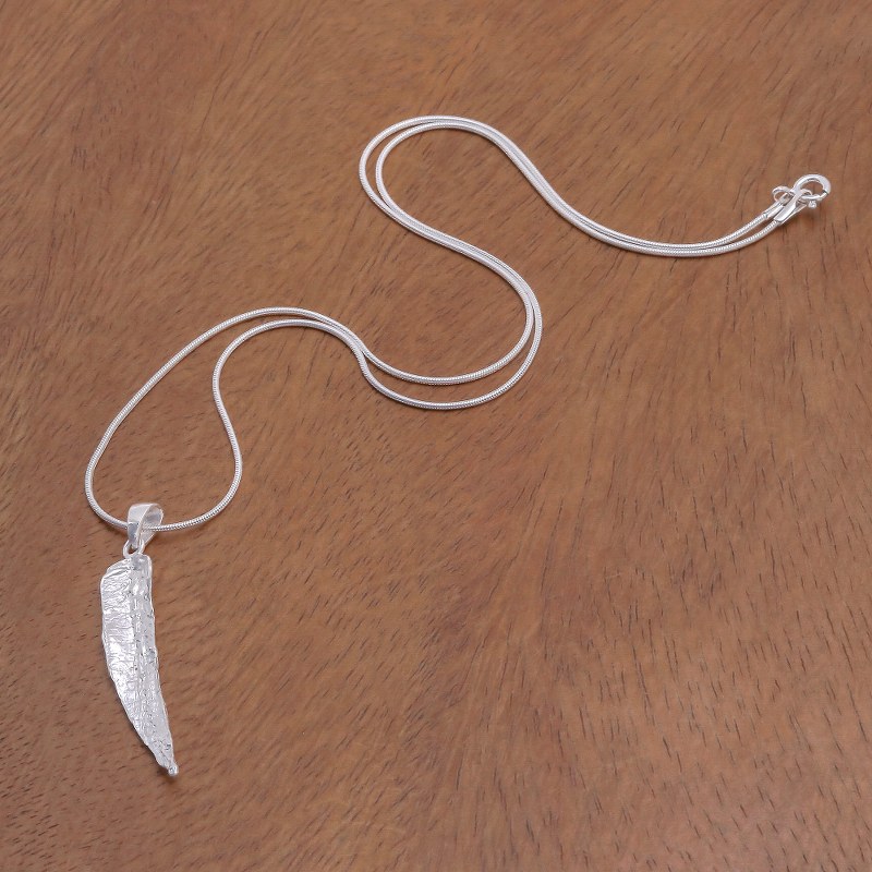 Crafted by hand from sterling silver, this abstract pendant necklace resembles a leaf. Pichaya in Thailand presents this modern accessory, given an intriguing combination of finishes.