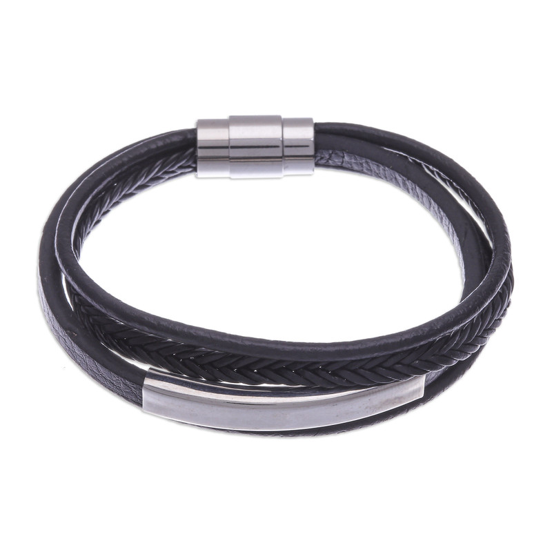 You can find our leather strand bracelet 'Mighty Strength in Black' by Passaramon in jewelry categories such as Modern Bracelets, No Stone Bracelets, Stainless Steel Bracelets, Leather Bracelets and Braided Bracelets. Enjoy exploring these sections for other Novica treasures.