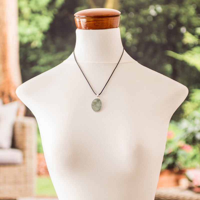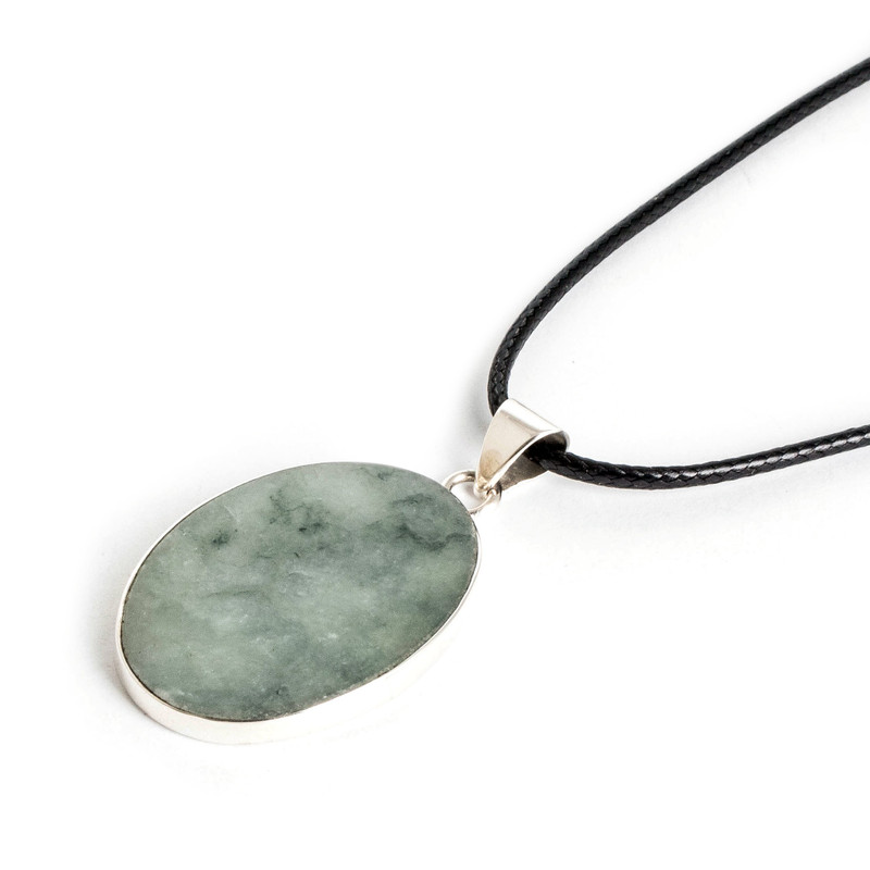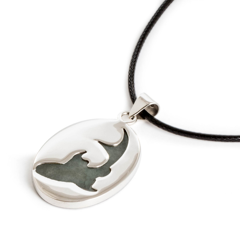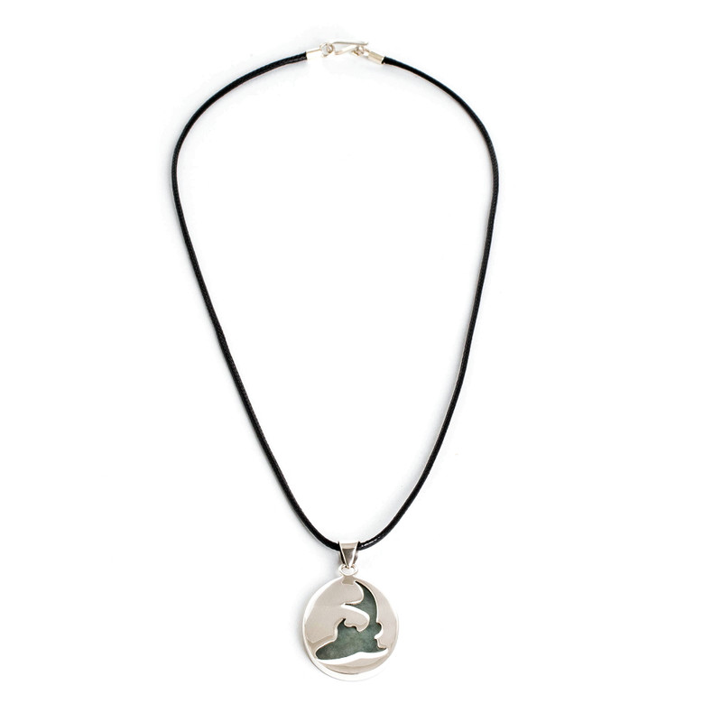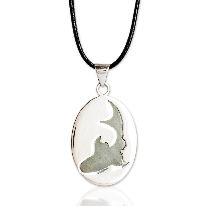 Wear the medallion of those in love with the marine realm and its fortitude! This cotton cord necklace, by Guatemala's Ruben and Gilda Perez, enhances its sterling silver pendant with a shark image carved from light green jade—the gem of vitality.