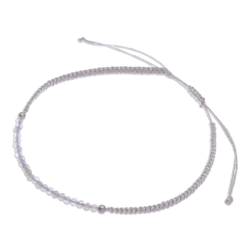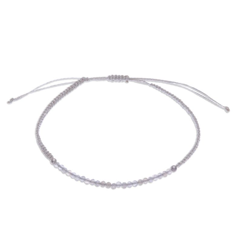 Capture the essence of modern elegance with Arshad Ullah's stunning pendant bracelet boasting delicate rutilated quartz and dainty silver-plated brass beads. Handcrafted in Thailand, each bead is carefully set into a refined silver-tone macrame cord while the adjustable sliding knot closure provides a stylish, comfortable fit.