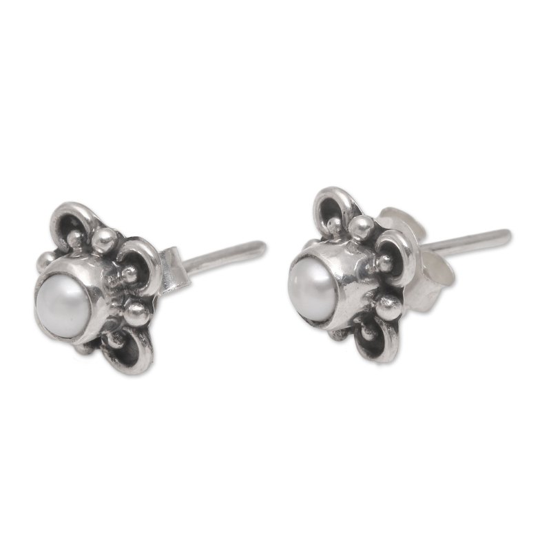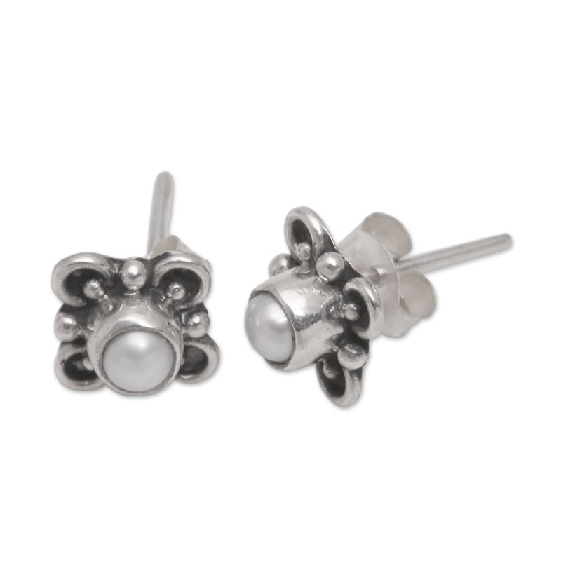 Backed by our 100% Happiness GuaranteeFramed by handcrafted sterling silver loops and dots with a combination of finishes, two glowing white cultured pearls are featured in this pair of stud earrings from Bali. Sukartini presents this cute accessory.