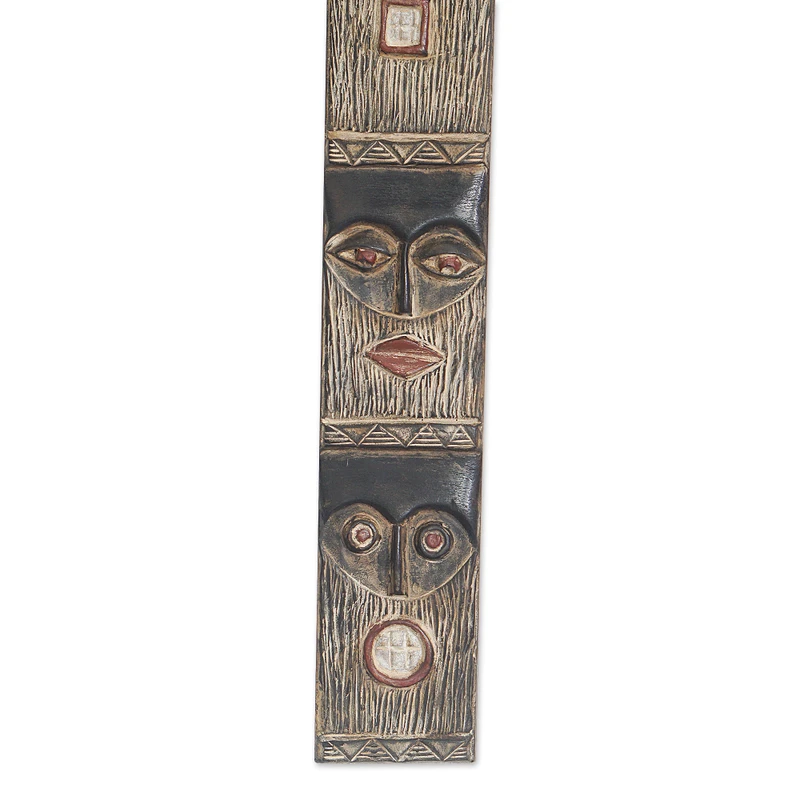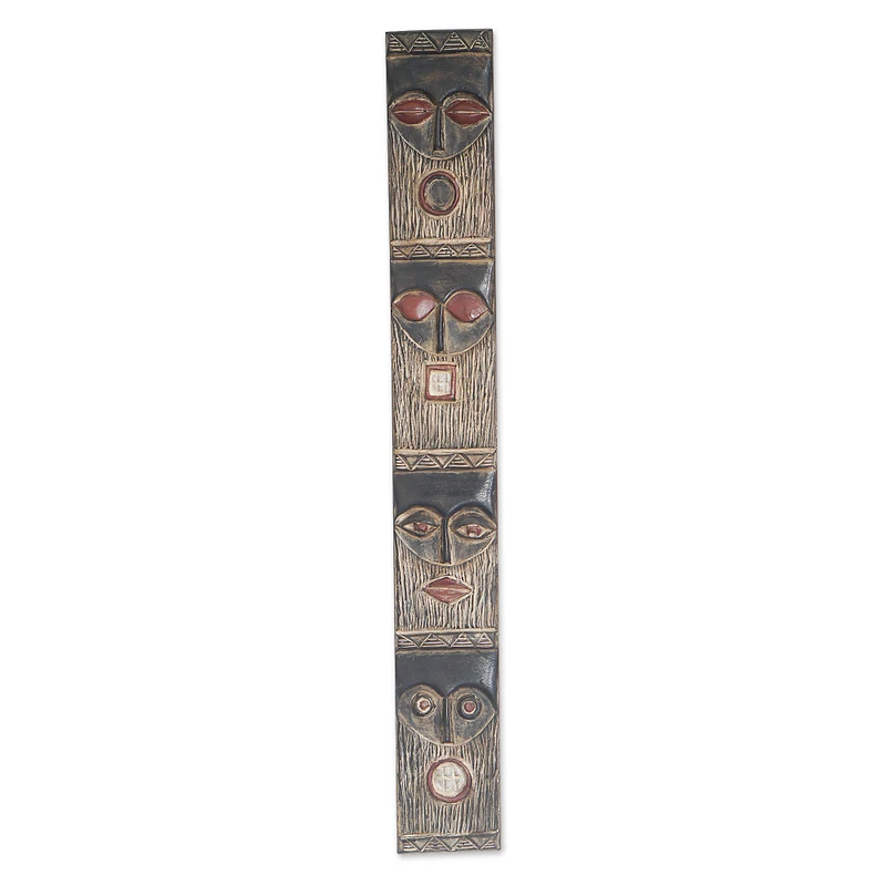 Backed by our 100% Happiness GuaranteeSimbisa means "to strengthen" and "to empower" in the African Shona language. It is also the name that Ghana's Ayoma Alhassan selected for this exceptional relief panel carved by hand in mahogany and decorated with faces he accentuates with a mixture of charcoal and glue and then paints by hand. This unique wall art is a tribute to the traditional Dogon boards of Mali that were used to adorn the entrances of homes, embellishing them with intricate depictions of human and animal figures to ward off evil spirits and safeguard the household.