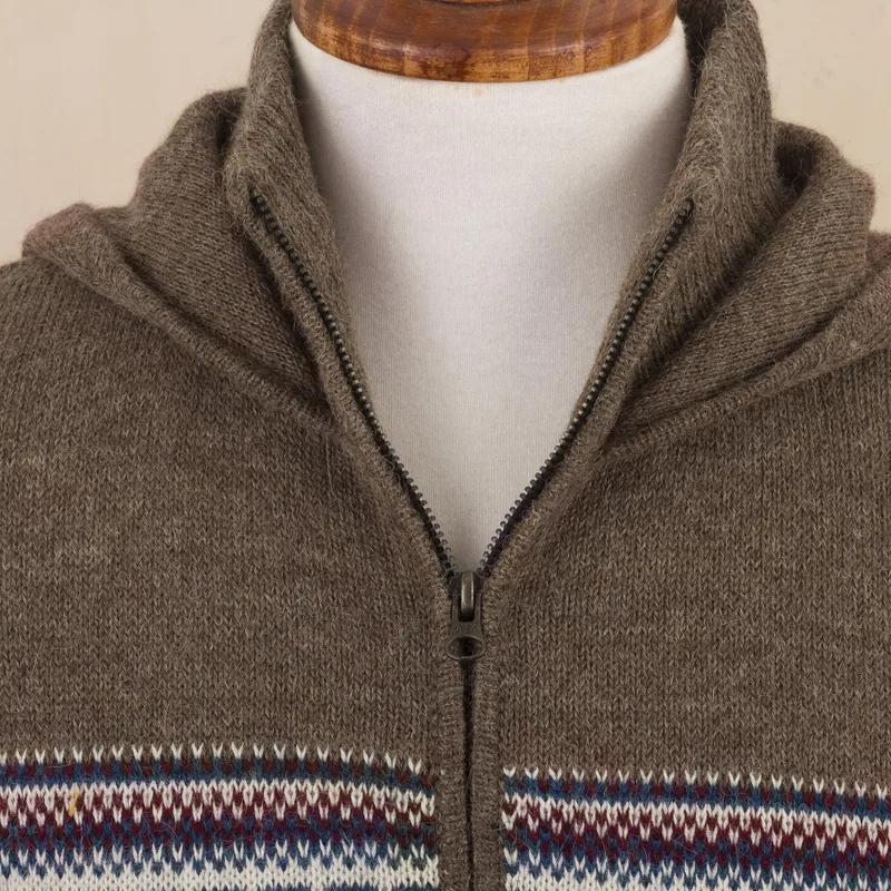 You can find our men's 100% alpaca hoodie 'Aventura' by Ricardo and Cesar in clothing categories such as Alpaca Sweaters, Alpaca Wool Sweaters and Hoodies Sweaters. Enjoy exploring these sections for other Novica treasures.