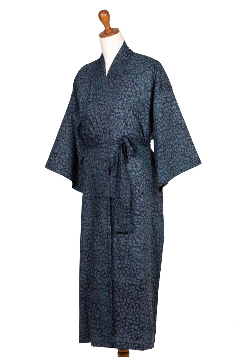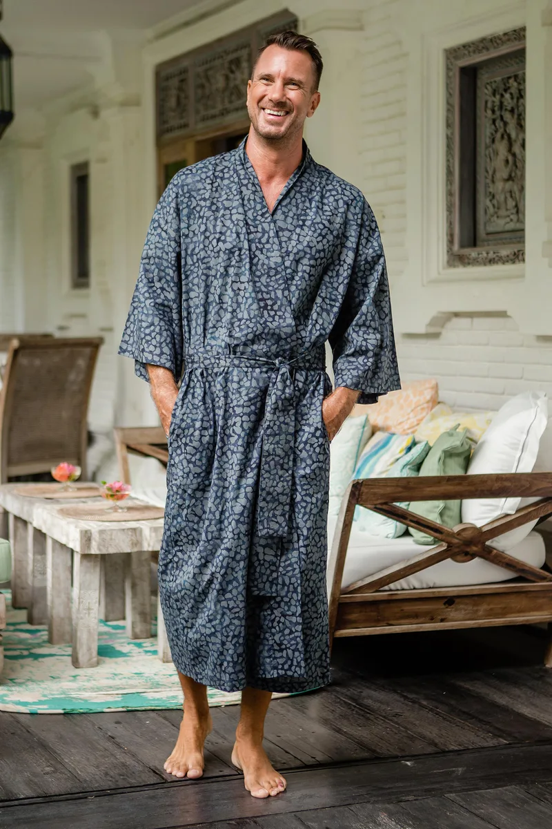 You can find our men's batik cotton robe 'Blue Midnight' by Saktut Raitawati in clothing categories such as Batik Robes and Cotton Robes. Enjoy exploring these sections for other Novica treasures.