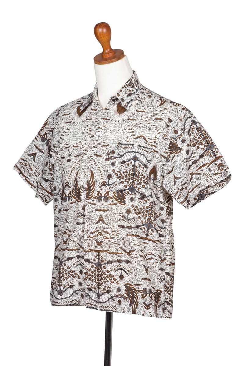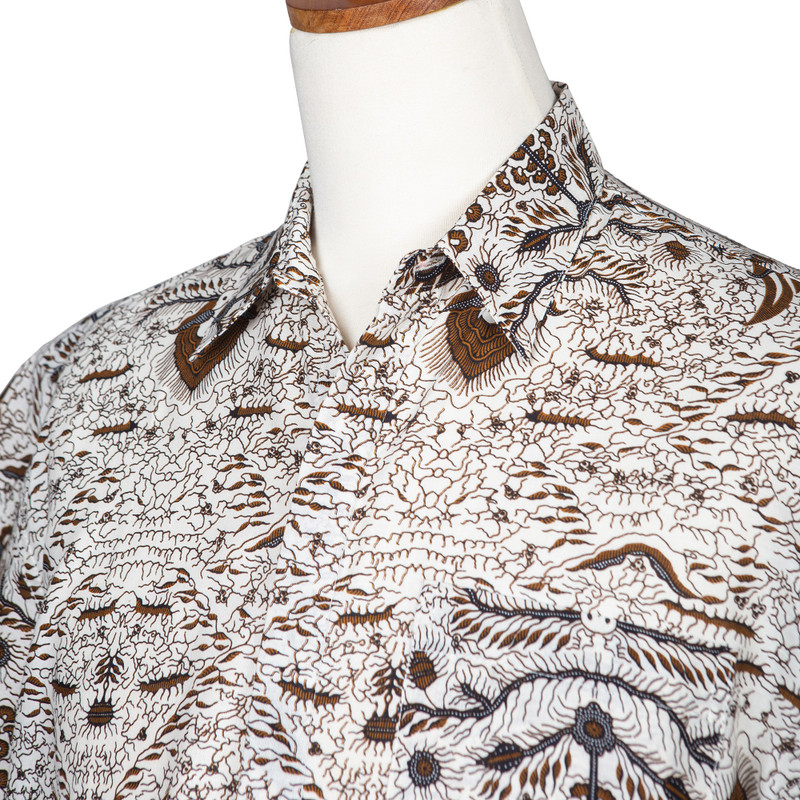 Backed by our 100% Happiness GuaranteeCrisp white cotton is dyed using the batik method, a resist-dyeing technique, to create the traditional sido asih motif in brown and black. Meaning "continuous love," sido asih is a motif originating in the Indonesian city of Surakarta. Hari and Arthur design the shirt while embracing unexpected results, which they says add to the uniqueness of his handcrafted textiles. The button-down shirt includes hidden coconut shell buttons and a chest pocket.