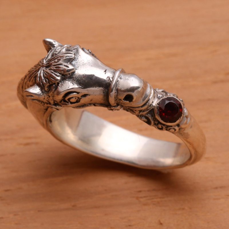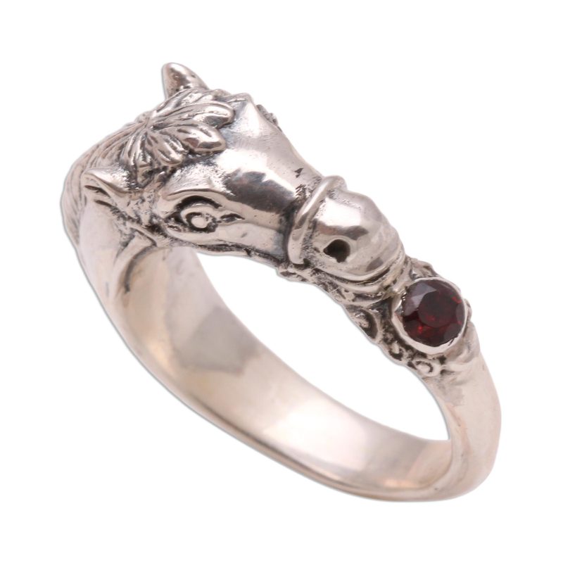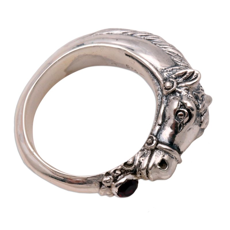 Backed by our 100% Happiness GuaranteeThought to awaken the inner fire of creativity, garnet adorns this handsome ring. Nyoman Rena depicts a sterling steed in fascinating detail. The handcrafted design conveys the horse's elegance and strength.