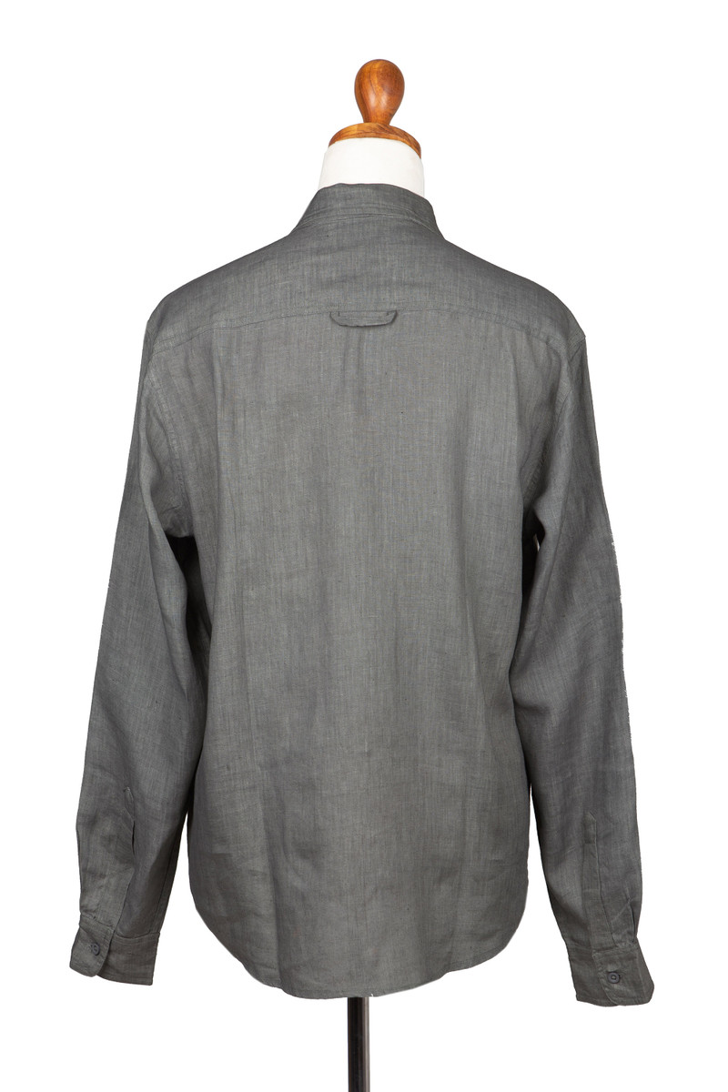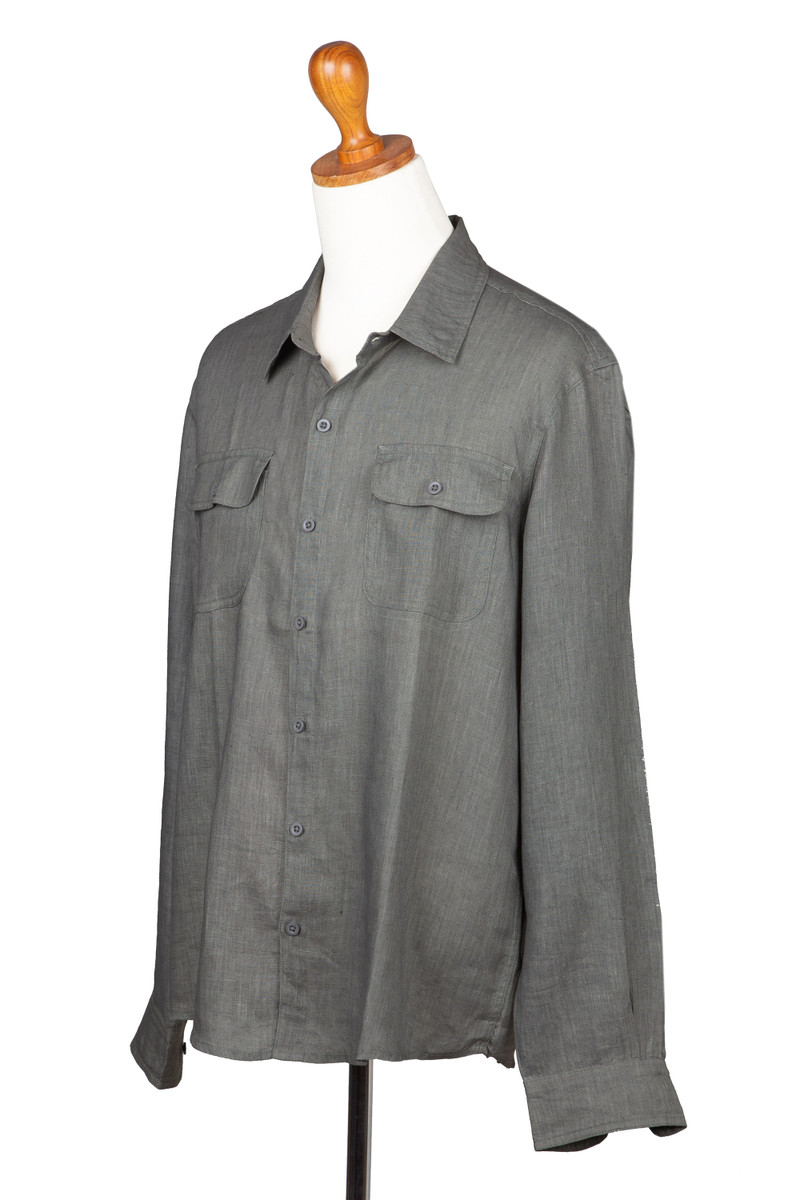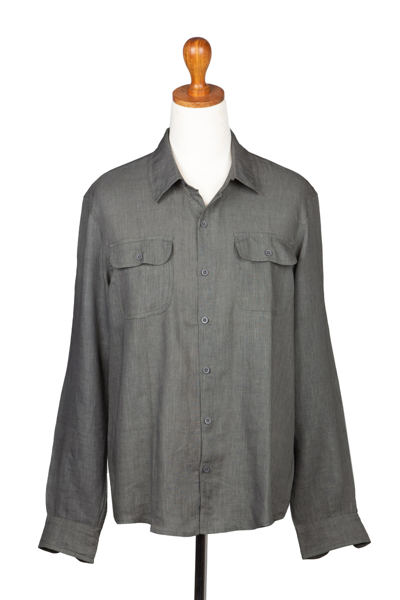 Add a touch of effortless style with this men's long-sleeved 100% linen shirt. Crafted with care by artisans in India, it features a wish list-inspired pattern that adds a twist to any outfit. From casual brunches to evening soirées, this shirt is a must-have for the guy who knows how to make a statement.