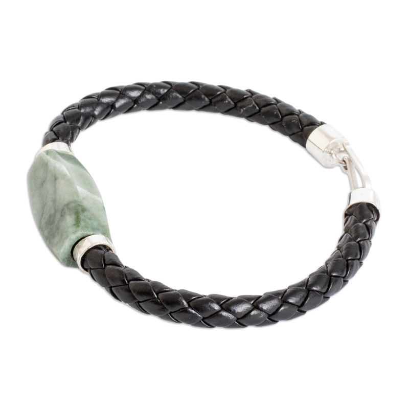 Delivery EstimateArtisans Ruben and Gilda Perez bring focus to strength with this striking men's pendant bracelet, where an apple green Guatemalan jade stone takes center stage. Paired with a braided faux leather black cord and gleaming sterling silver accents, this bracelet balances boldness with simplicity, adding a touch of distinction to any wrist.
