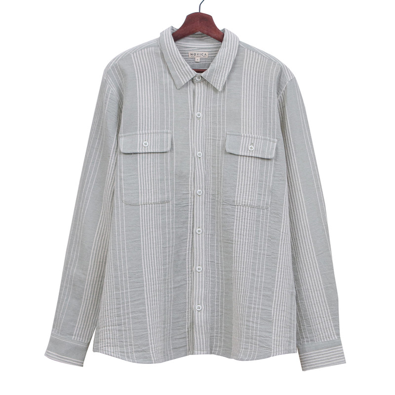 Thai designer Jamriang is passionate about textiles and prides herself in creating comfortable and long-lasting apparel. Her men's shirts fit right in with a soft hand, subtle textures and restrained stripe motifs. The long-sleeved shirt pairs perfectly as a casual layer over your favorite tee or buttoned-up for a more polished look. Features two front button pockets and double button cuff.