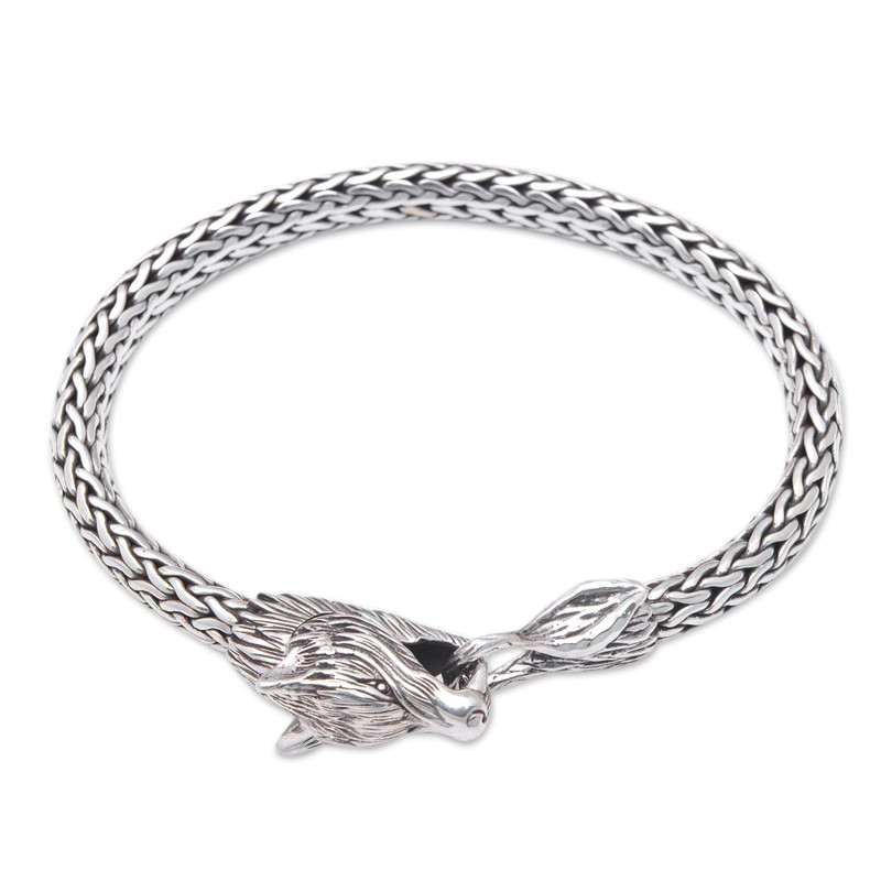 You can find our men's sterling silver chain pendant bracelet 'Wolf Glory' by Nyoman Ariawan in jewelry categories such as Animal Themed Bracelets, Inspirational Bracelets, Balinese Traditional Silver Bracelets, No Stone Bracelets and Silver Bracelets. Enjoy exploring these sections for other Novica treasures.