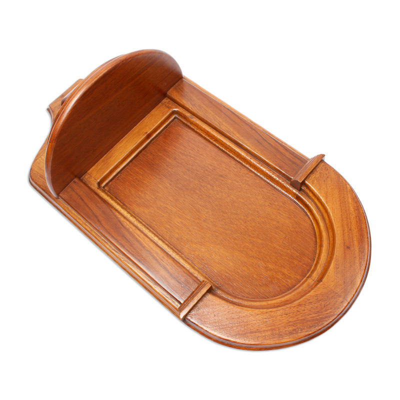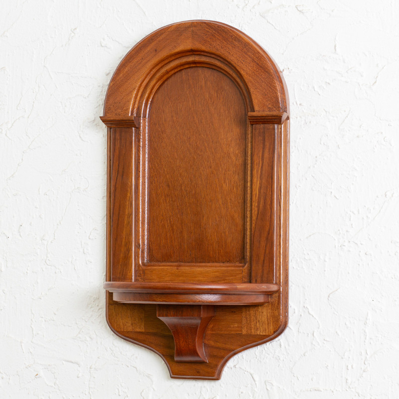Working in huanacaxtle, or parota wood, Ruben Beltran recreates an elegant style from colonial Mexico. Wall shelves such as this often held candelabra or a religious image in traditional homes and haciendas. The wood's grain beautifully complements its gracefully carved contours.