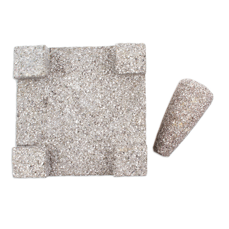 Crafted from volcanic basalt by the artisans of the Comonfort Group in Mexico, the molcajete needs to be "cured" before using to eliminate any stone residues. This can be done by placing a few dried beans, corn or rice in the bowl and grinding them with the pestle until pulverized. Allow the pulverized grain to sit for 15 minutes, hand-wash the bowl, let it dry and then it will be ready to use.