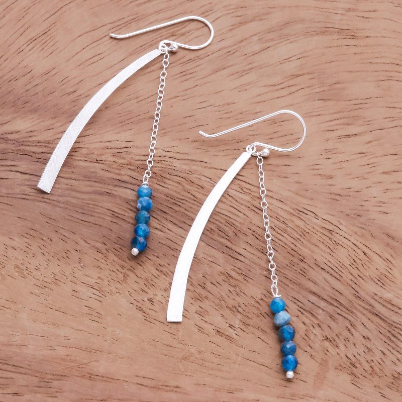 Backed by our 100% Happiness GuaranteePresented by Somsiri Juntamin, these dangle earrings from Thailand will add a modern touch to any ensemble. Two curved portions are crafted from sterling silver and treated with a brushed-satin finish as sterling chain lengths culminate in natural apatite beads.