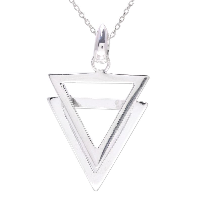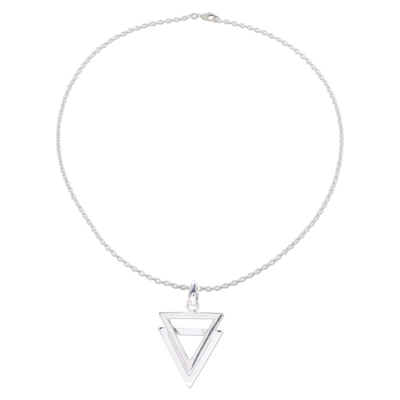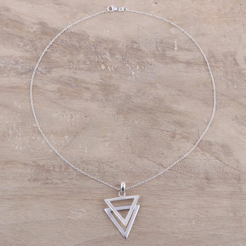 This is the necklace for the person with a sense of direction. The pendant consists of two overlapping sterling silver triangles to form a dynamic arrow. This handcrafted pendant necklace is presented by Aparna of India.