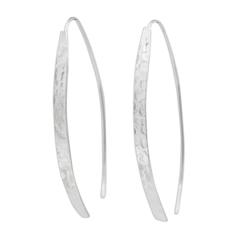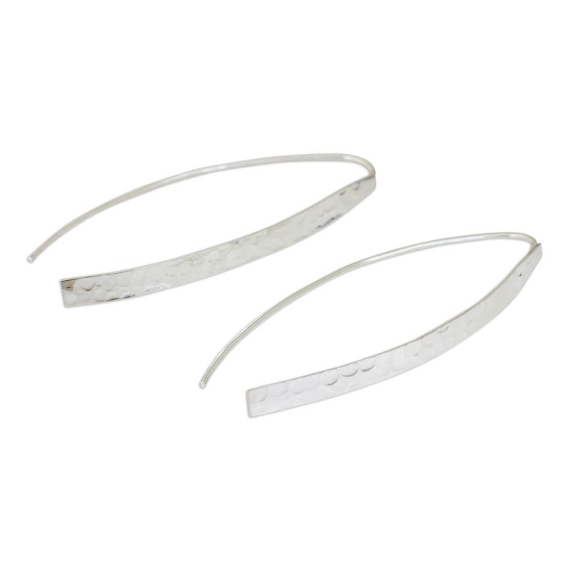 Backed by our 100% Happiness GuaranteeDramatic but straightforward, these sterling silver earrings from Pichaya in Thailand flaunt a modern aesthetic. Long arcs of hammered silver are balanced by equally long polished earwires for a design that is unfussy and utterly beautiful.